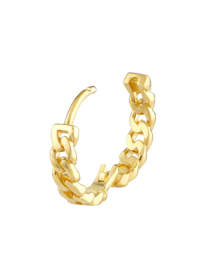 Make a bold statement with these sleek and stylish 15mm Curb Pattern Hoops. Crafted from lustrous 14K yellow gold, these earrings feature a classic curb pattern design that adds a touch of sophistication. The hinge closure ensures a secure and comfortable fit, while the stackable design allows you to create your own unique look.