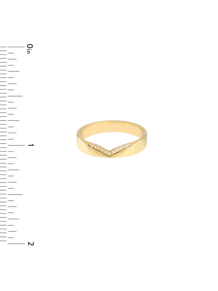 Make a statement with our elegant Diamond Chevron Polished Band. This stylish ring is crafted in luxurious 14K yellow gold and features a captivating chevron pattern set with 1/20tcw of sparkling diamonds. The polished finish enhances the brilliance of the diamonds, creating a truly dazzling look. A perfect symbol of enduring love, this band is sure to be treasured for years to come.