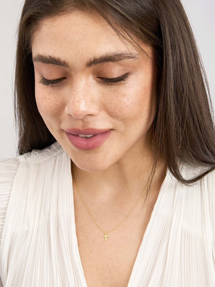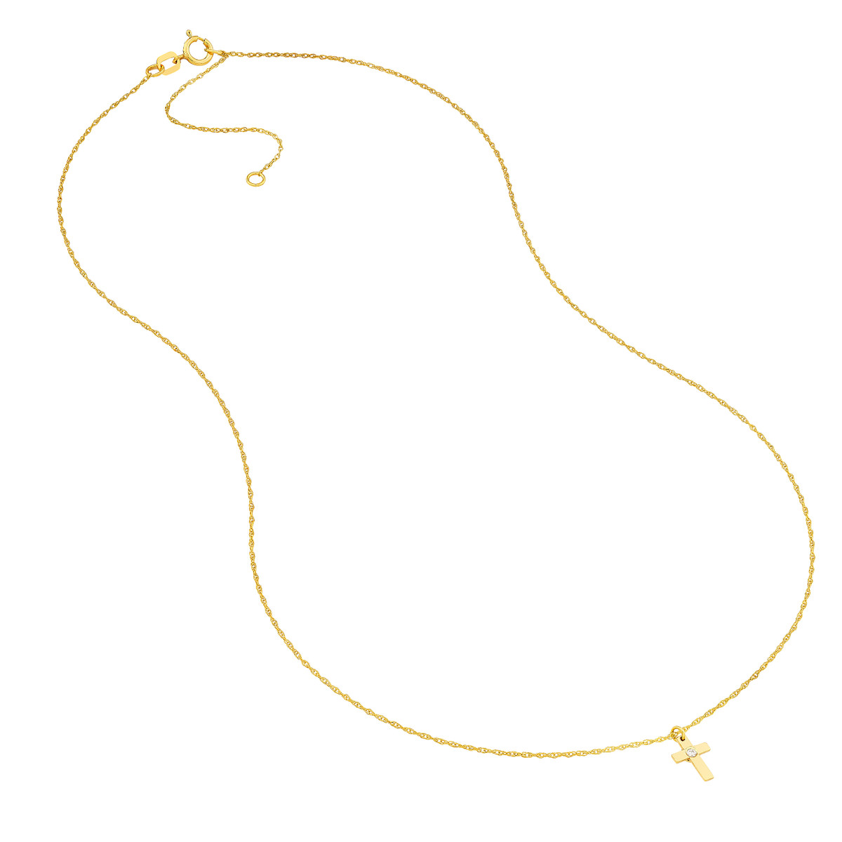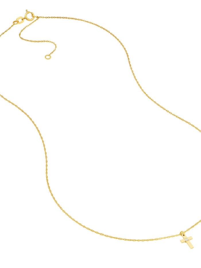 Shine with faith! This 14K yellow gold cross necklace features a delicate 1.2pt diamond accent for a touch of sparkle. The adjustable cable chain allows you to customize the fit from 16 to 18 inches, ensuring a perfect match for your style. A timeless symbol of devotion, this necklace makes a beautiful everyday piece or a meaningful gift.