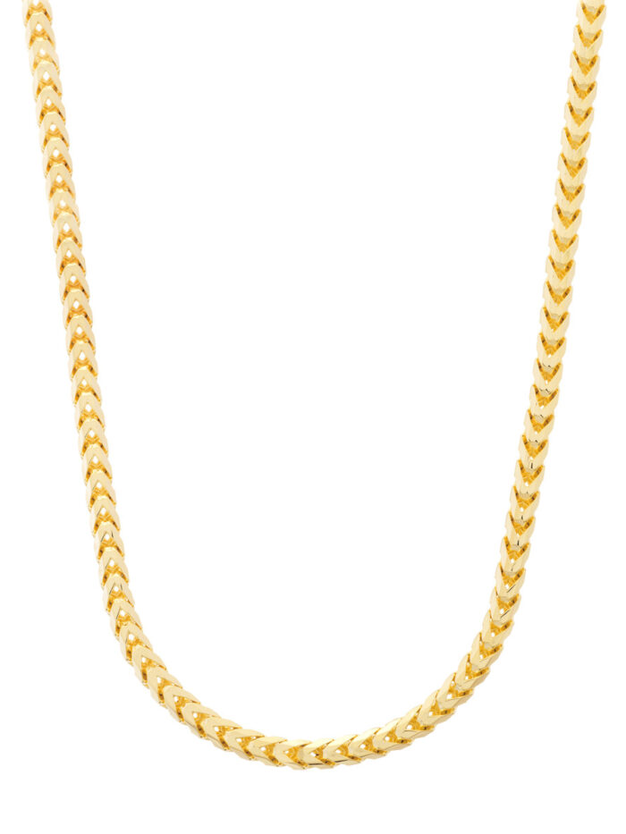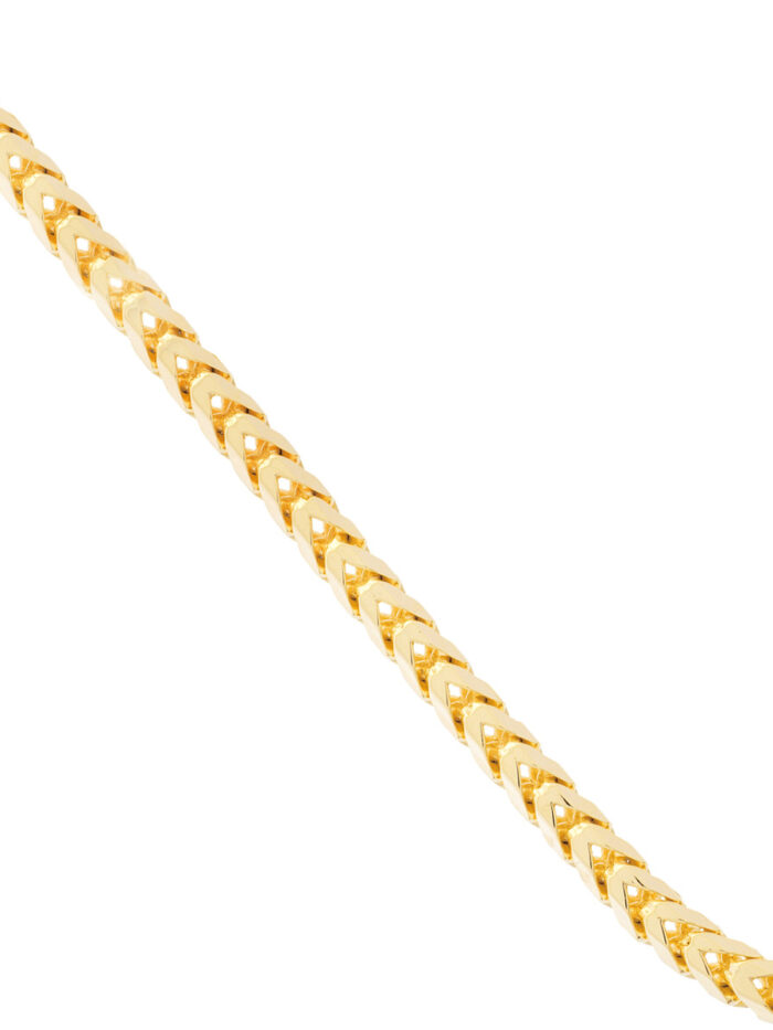 Make a bold statement with this dazzling 14K yellow gold Diamond-Cut Franco Chain. The intricately crafted, diamond-cut links catch the light with every movement, exuding elegance and sophistication. Designed with a secure lobster lock closure for both style and security. At 26 inches in length, it makes a commanding presence, adding a touch of luxury to your everyday look.