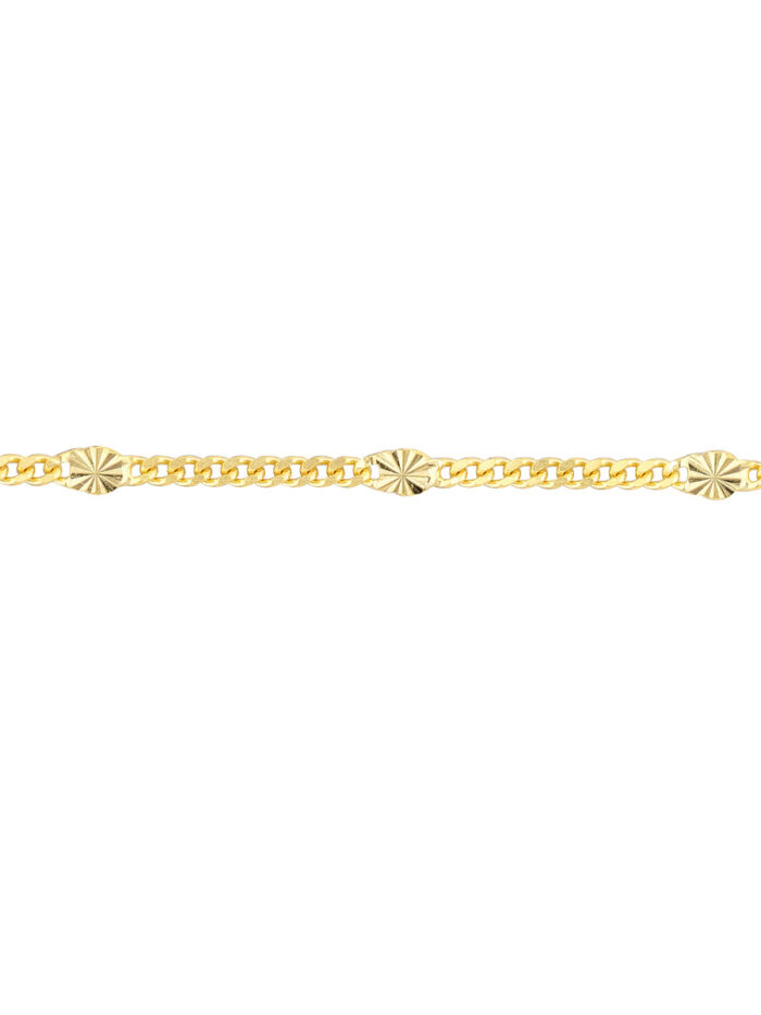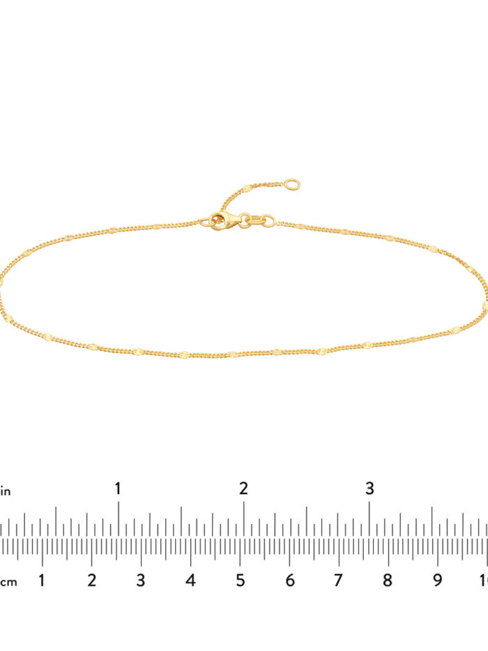 14K Yellow Gold Diamond-Cut Stations Curb Chain Anklet – Adjustable 9-10 inch – by Dazyle
