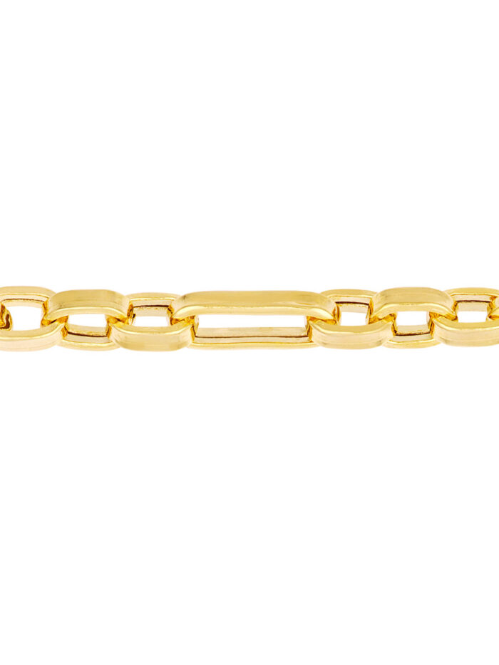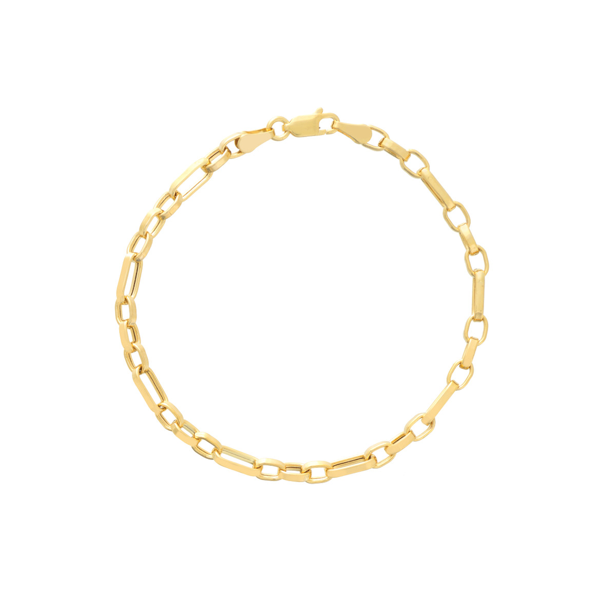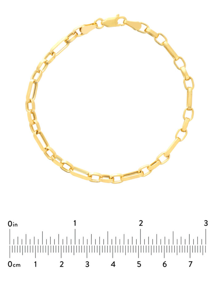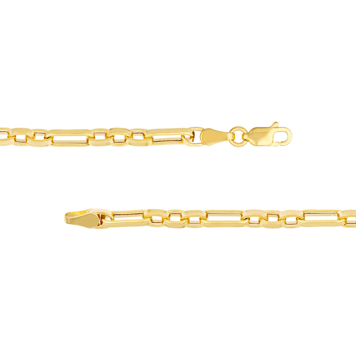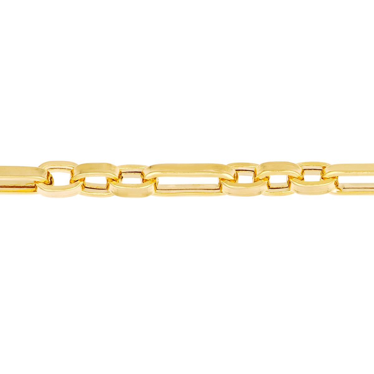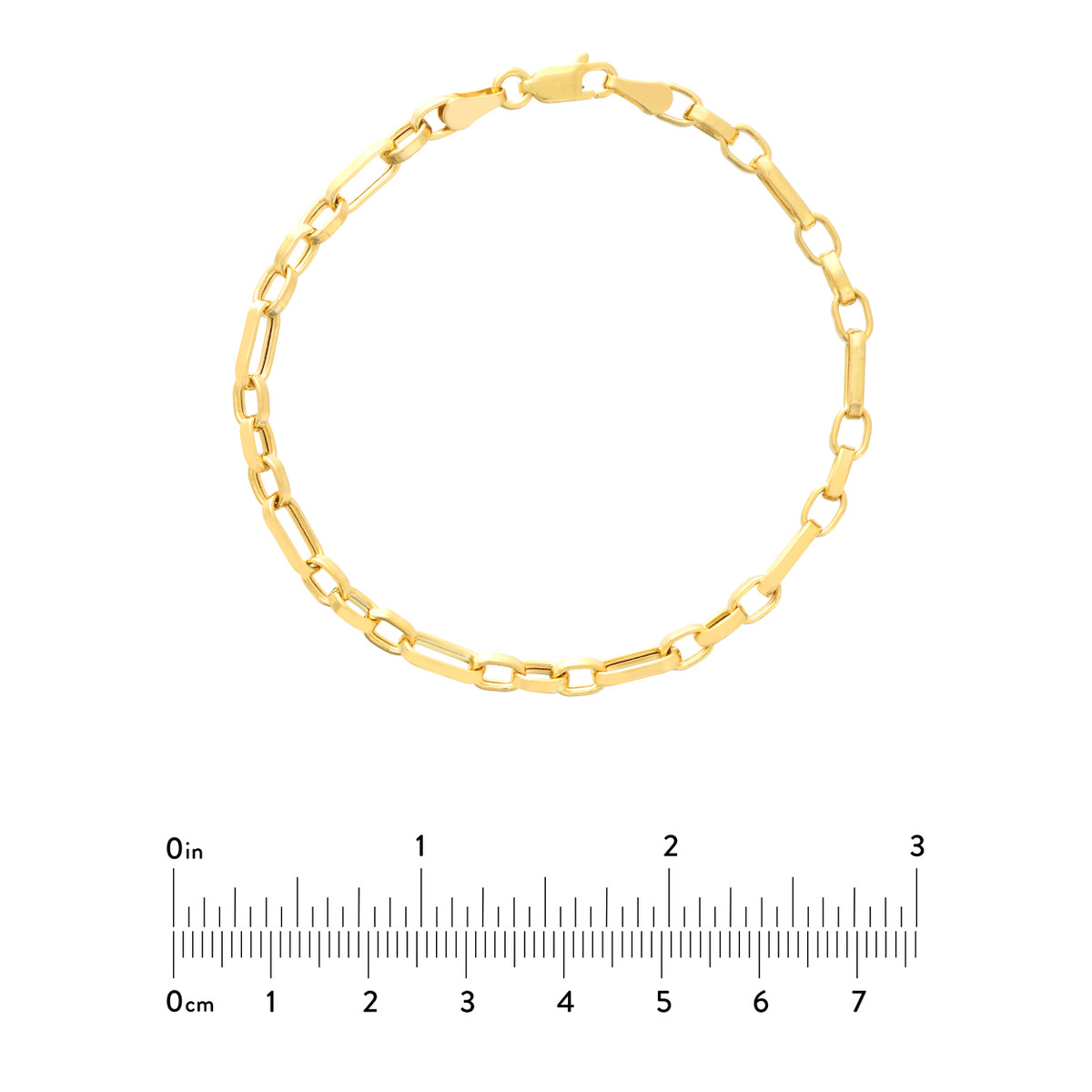 Embrace timeless elegance with this exquisite 14K Yellow Gold Figaro Oval Link Chain Bracelet. Crafted from solid gold and featuring a classic Figaro design with oval links, this bracelet exudes sophistication. The 4.25mm width adds a subtle touch of boldness, making it perfect for both everyday wear and special occasions. A secure lobster clasp ensures a comfortable and secure fit.