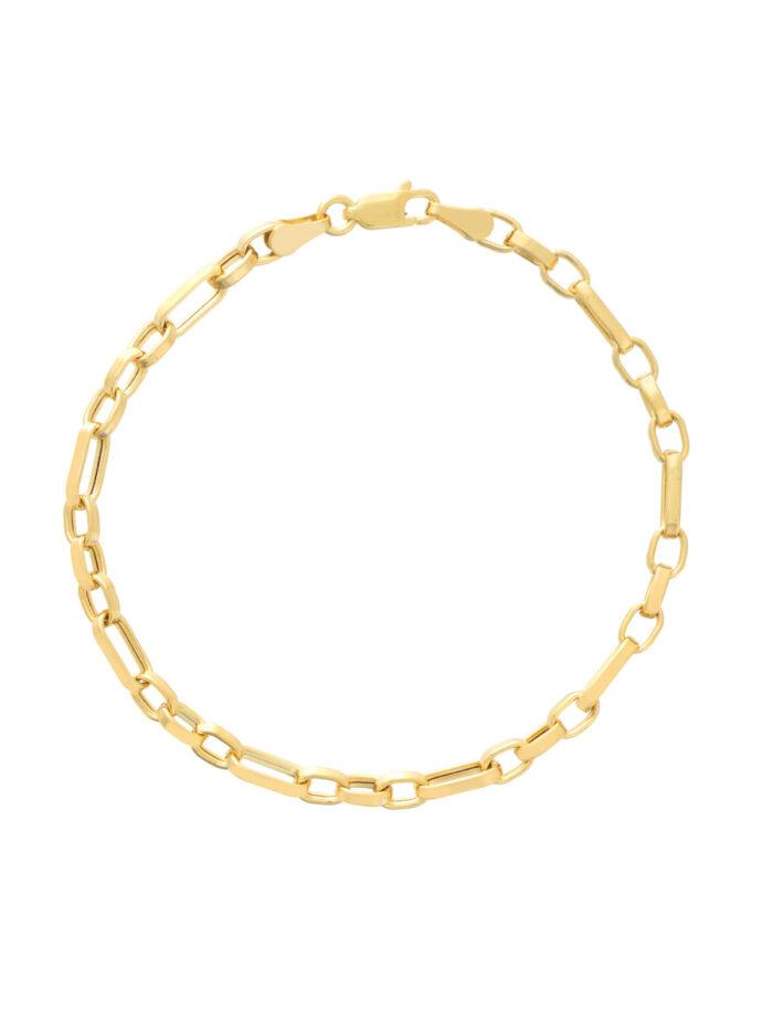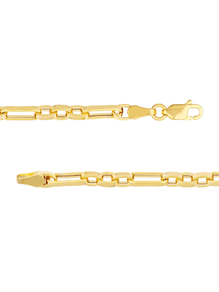 Embrace timeless elegance with this exquisite 14K Yellow Gold Figaro Oval Link Chain Bracelet. Crafted from solid gold and featuring a classic Figaro design with oval links, this bracelet exudes sophistication. The 4.25mm width adds a subtle touch of boldness, making it perfect for both everyday wear and special occasions. A secure lobster clasp ensures a comfortable and secure fit.