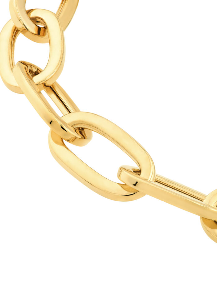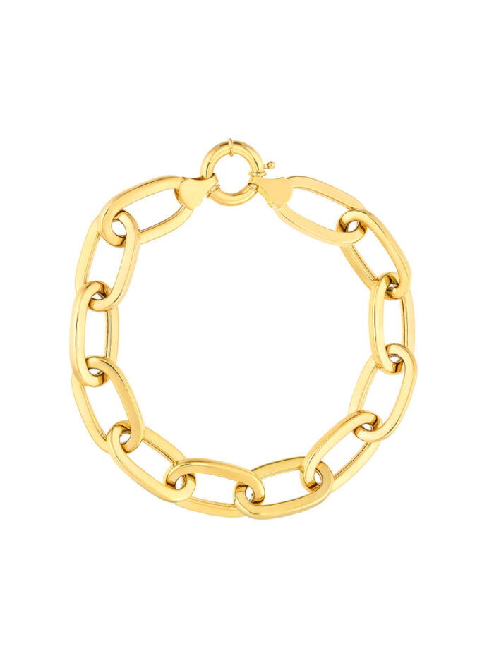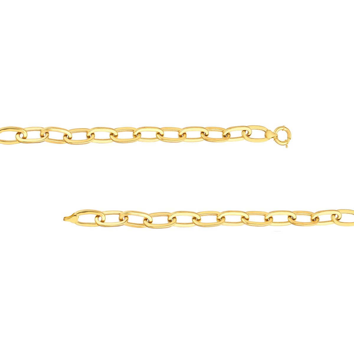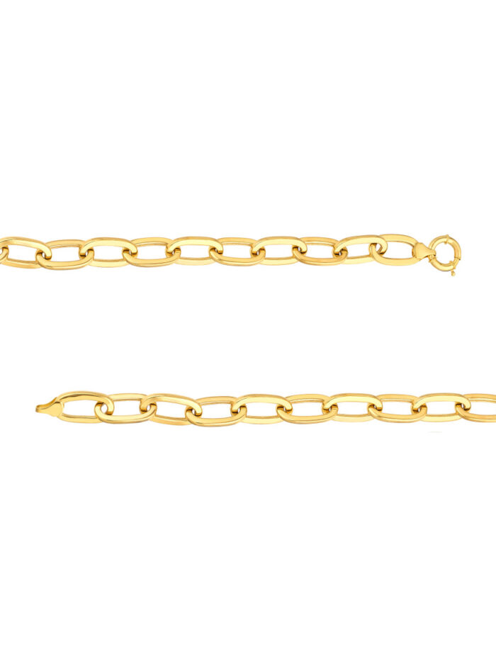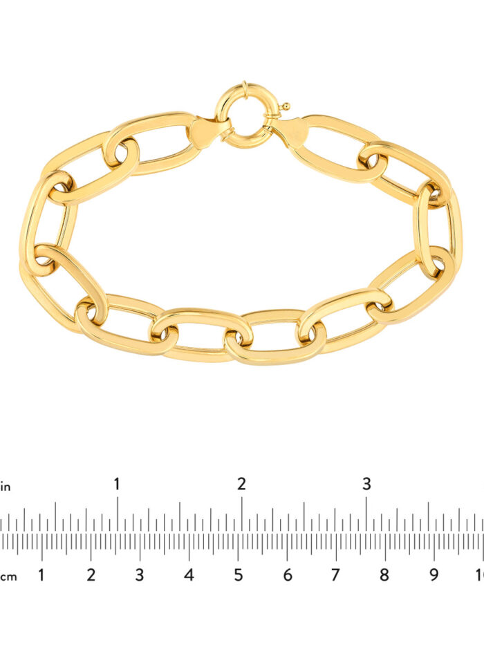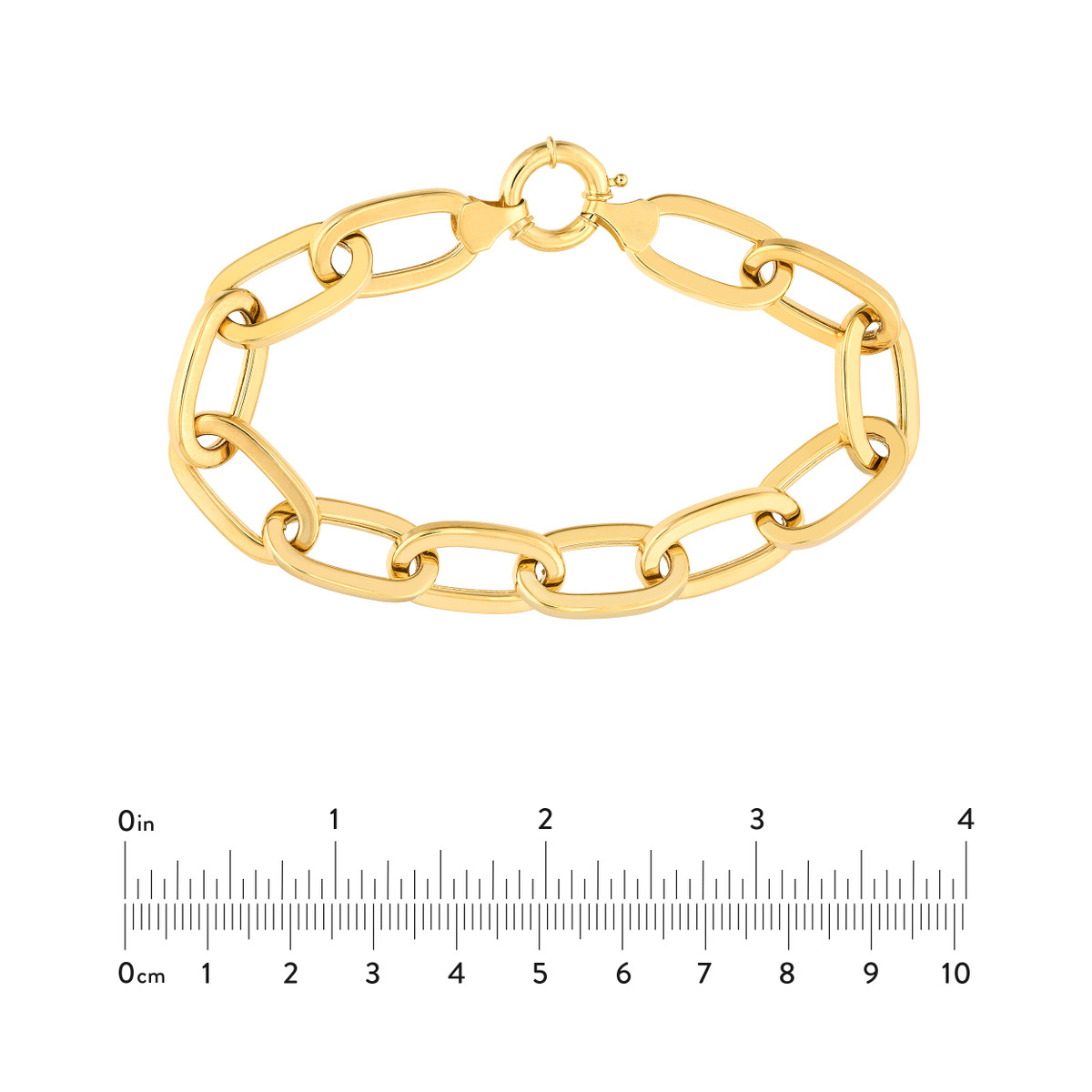 Shine with this elegant 14K yellow gold bracelet featuring a delicate, polished oval link design. The smooth, hollow links create a classic and timeless look, while the spring ring closure ensures a secure and easy fit. This bracelet is perfect for everyday wear or special occasions, adding a touch of warmth and luxury to any ensemble. Measuring 7.75 inches in length, it gracefully adorns the wrist.