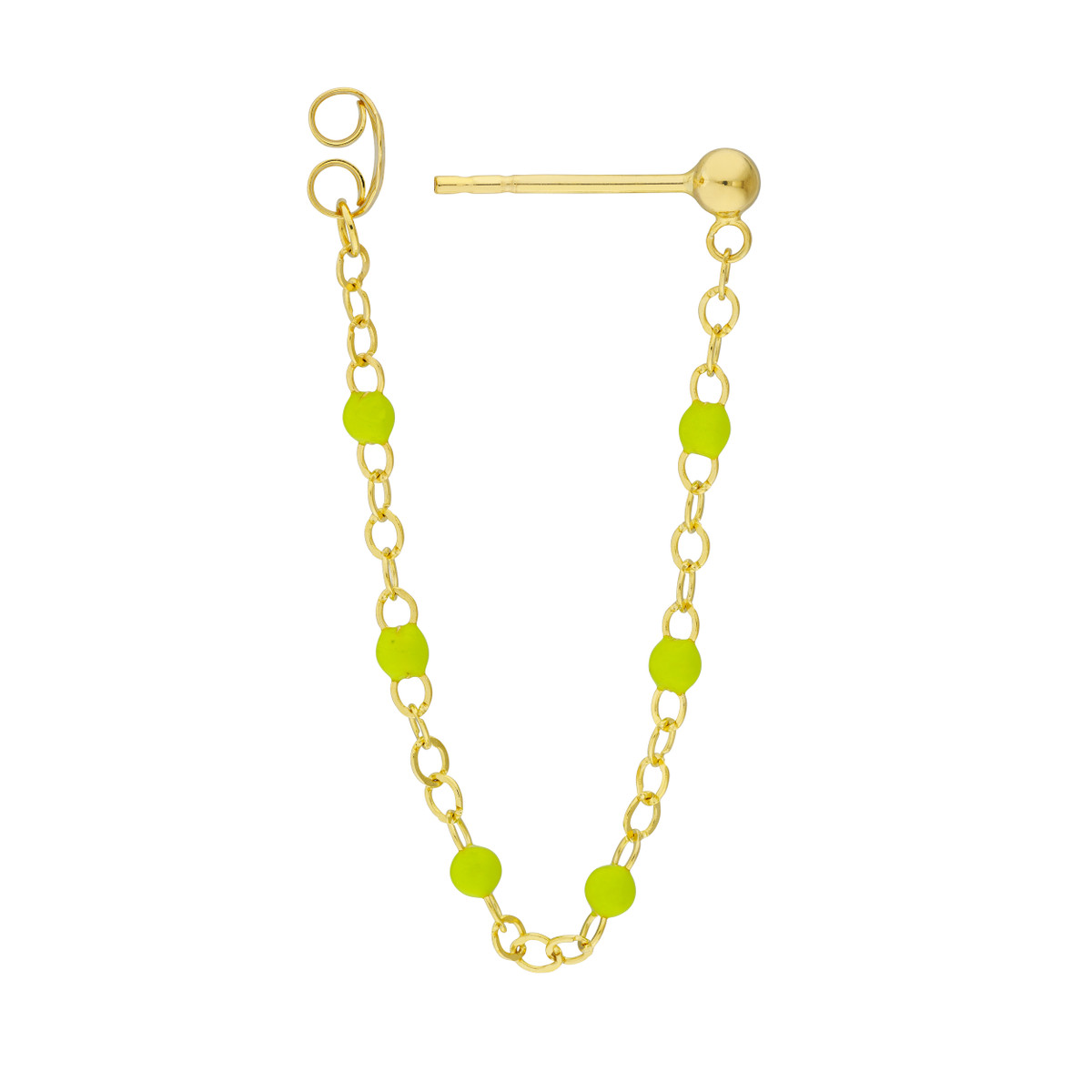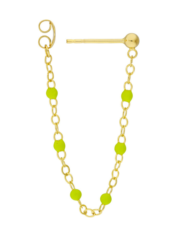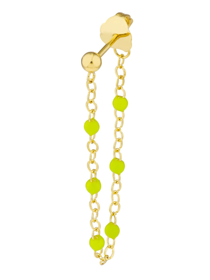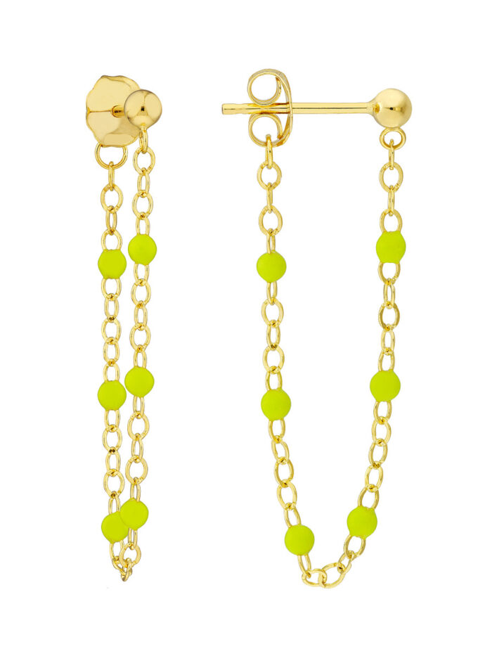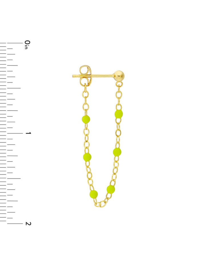 Add a pop of vibrant personality to your look with these eye-catching Front to Back Green Enamel Earrings. Crafted from lustrous 14K yellow gold, these earrings feature delicate green enamel beads arranged in a captivating front-to-back design. The 2.0mm thickness adds a subtle touch of dimension, while the secure post & nut closure ensures comfortable wear throughout your day. Whether you’re dressing up for a special occasion or adding a touch of freshness to your everyday style, these earrings are sure to make a statement.
