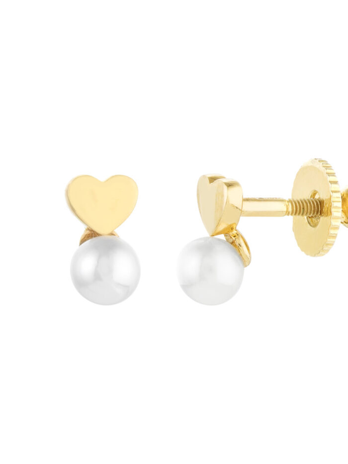These delicate 14K yellow gold heart stud earrings are the perfect starter pair for any child. Featuring a 4mm pearl, these earrings are lightweight and comfortable for everyday wear. The secure screw back closure ensures they stay in place, while the classic heart design adds a touch of sweetness. Give your little one a timeless piece of jewelry they’ll treasure for years to come.