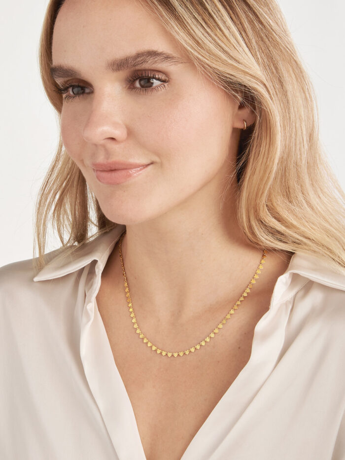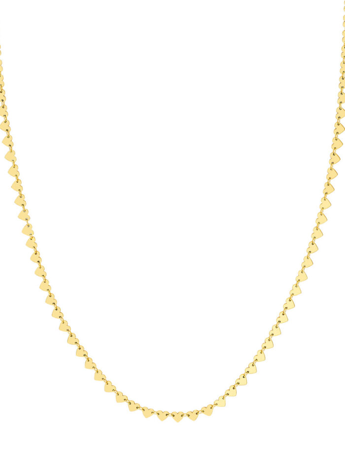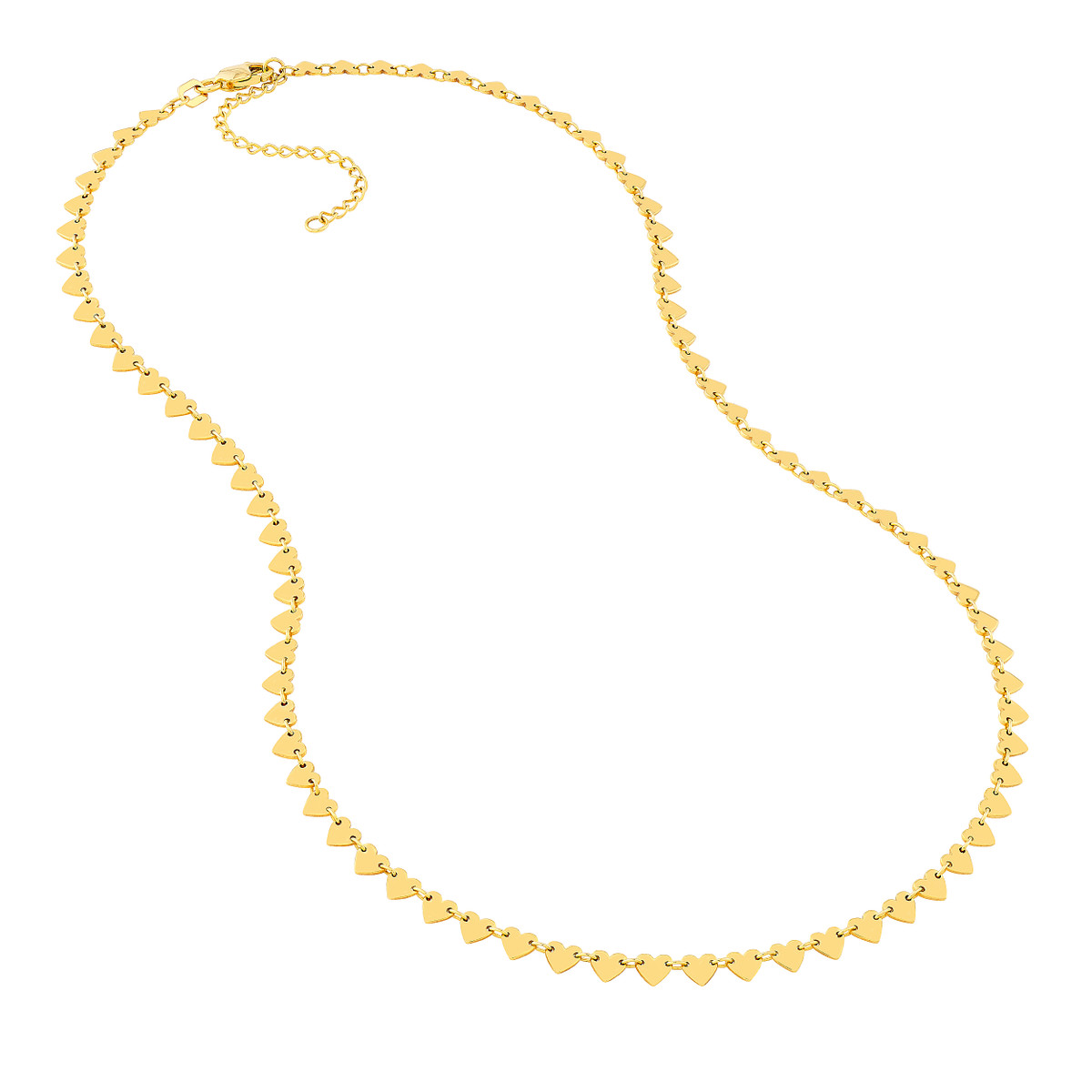 Celebrate love and style with this charming 14K yellow gold heart station cable chain necklace. Featuring delicate heart accents along a classic cable chain, this necklace adds a touch of sweetness to any outfit. The adjustable length (16 to 18 inches) ensures a perfect fit for everyone.