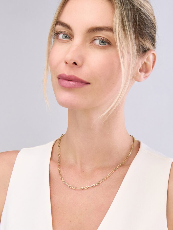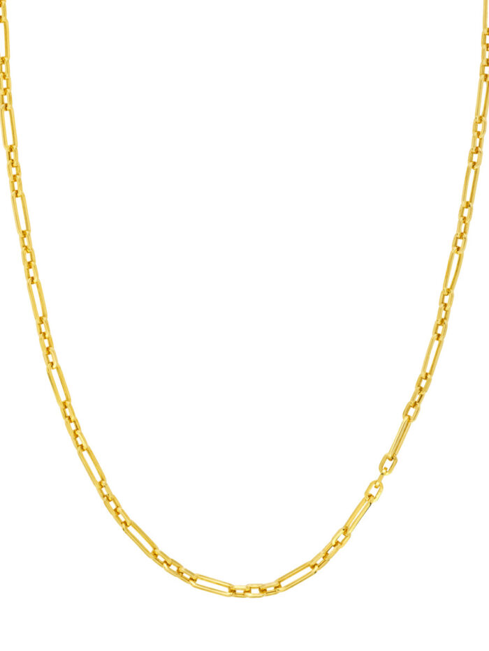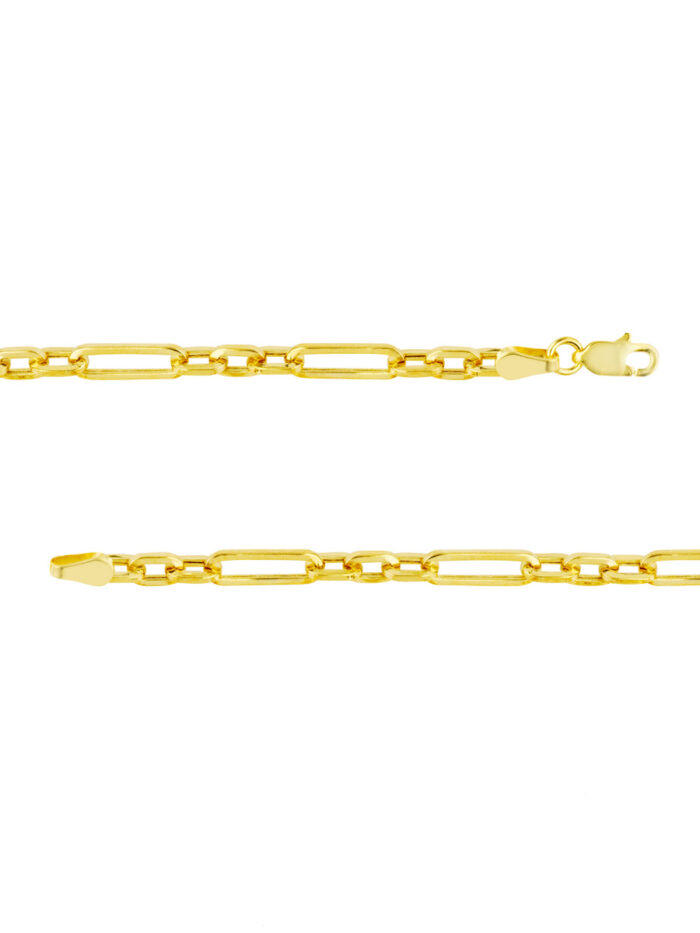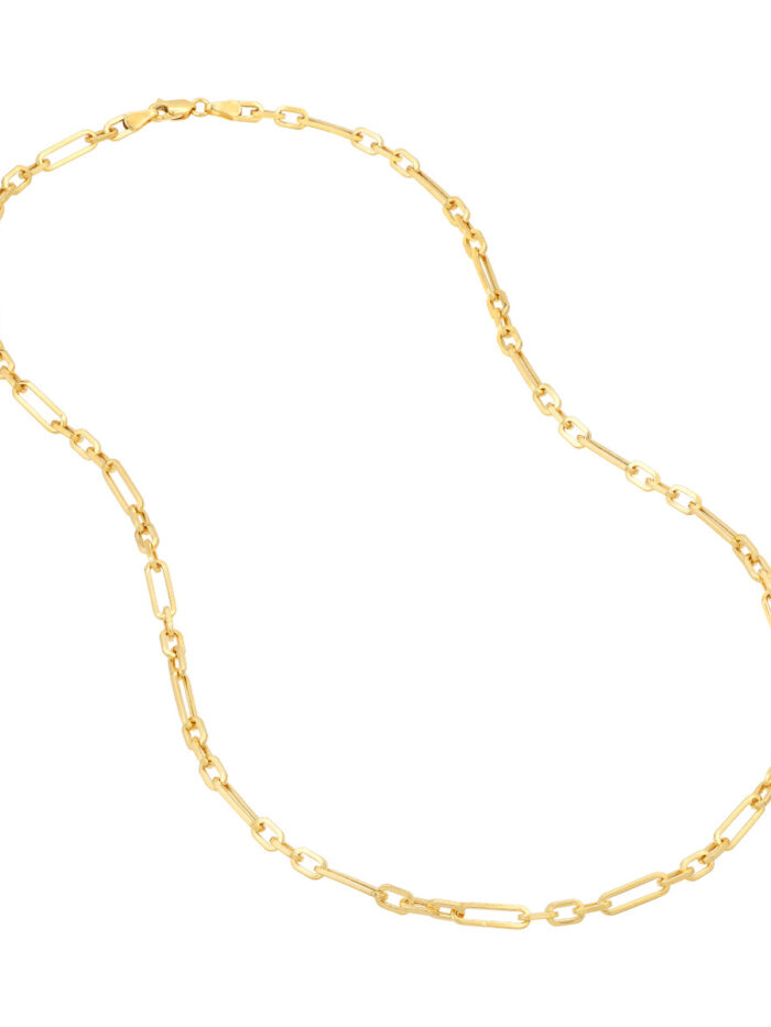 Embrace individuality with this striking 14K yellow gold 3+1 hollow paperclip chain. The unique 3+1 design adds dimension and intrigue, while the hollow construction offers a lightweight yet substantial feel. Crafted from lustrous 14K yellow gold, this chain is both stylish and durable. The secure lobster lock closure ensures easy wear and peace of mind.