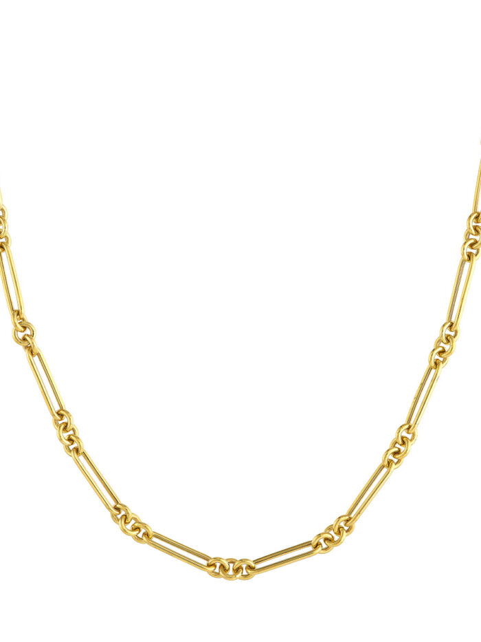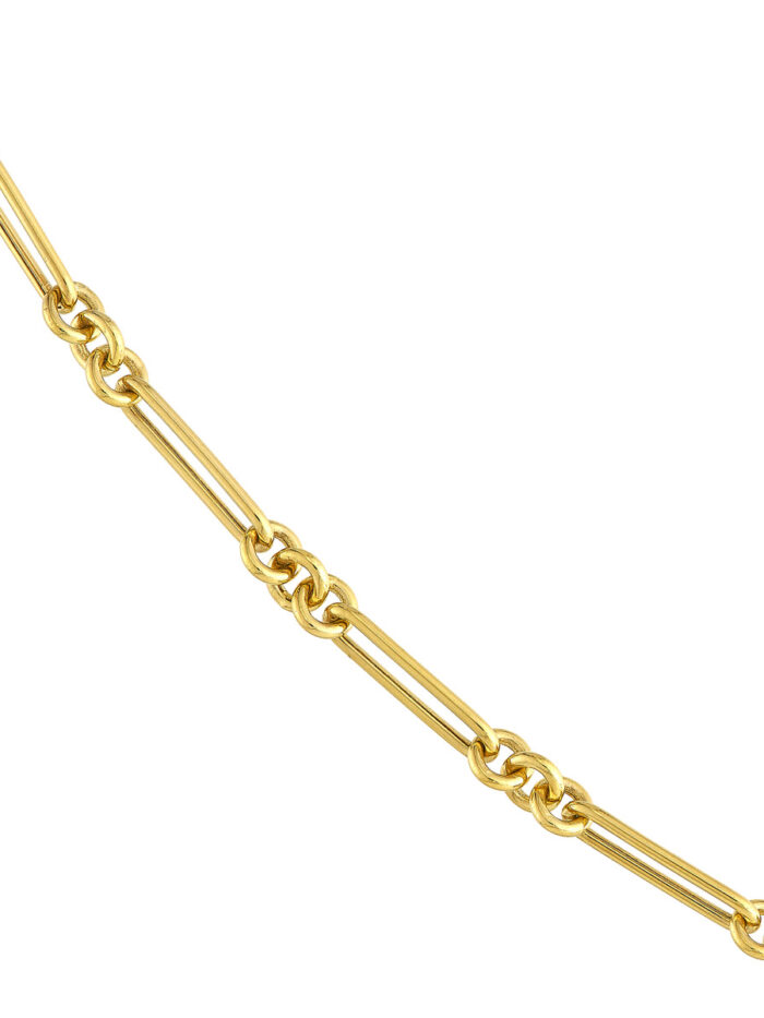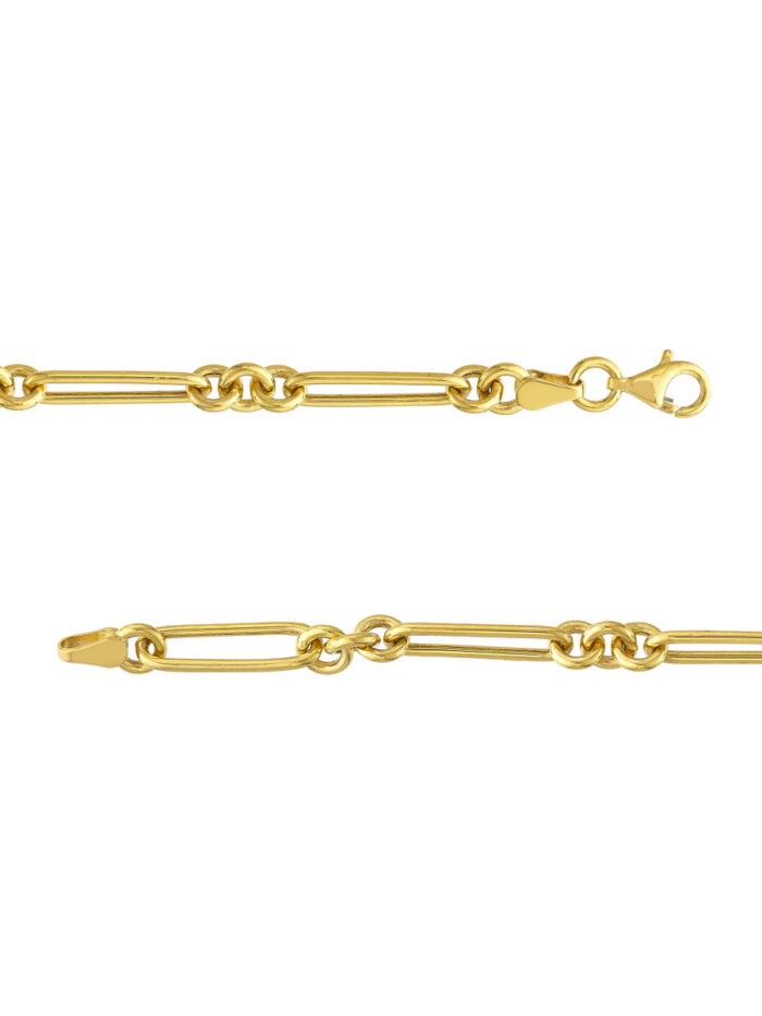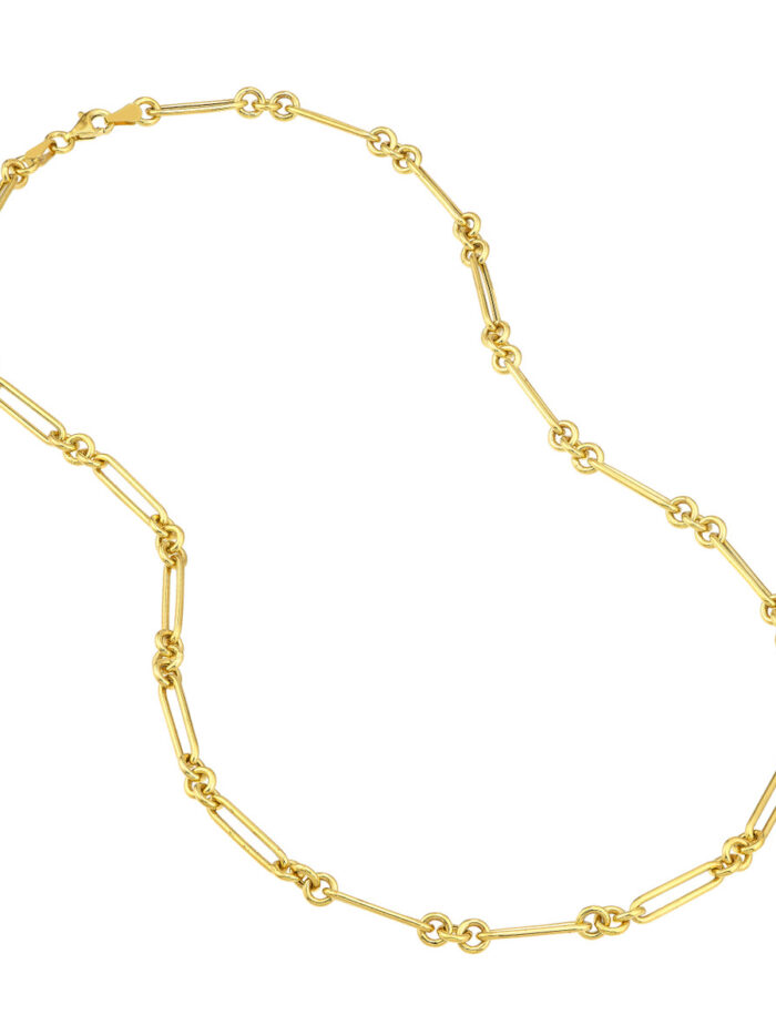 Add a touch of modern elegance to your style with this 14K yellow gold hollow paper clip chain. The unique 3+1 link design features three 5mm round links and one elongated 4x17mm link, creating a captivating interplay of textures. The secure pear shape lobster clasp ensures easy wear and a comfortable fit. Measuring 16 inches in length, this chain is perfect for everyday wear or adding a touch of sophistication to your special occasions.