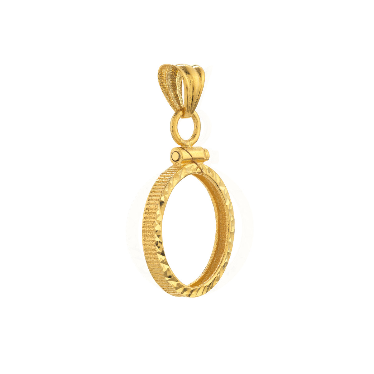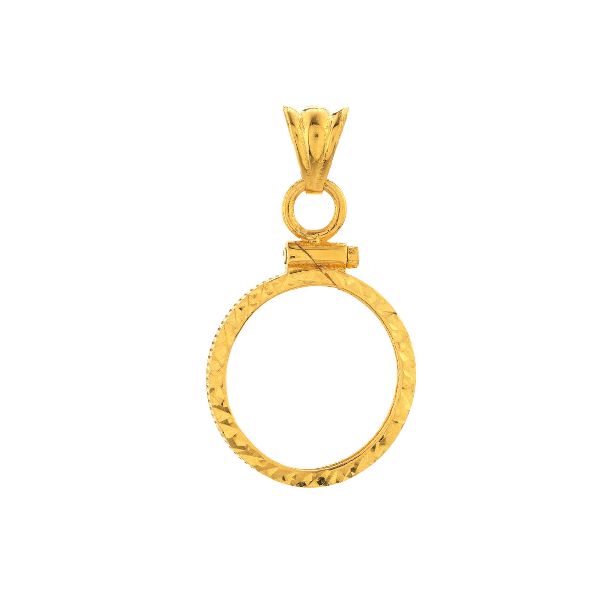 Showcase your 1/10 oz Canadian Maple Leaf coin with this elegant 14K yellow gold bezel. The diamond-cut design adds a touch of sparkle, while the secure screw top closure keeps your coin safe and protected. Perfect for collectors or anyone who appreciates fine craftsmanship and timeless beauty.
