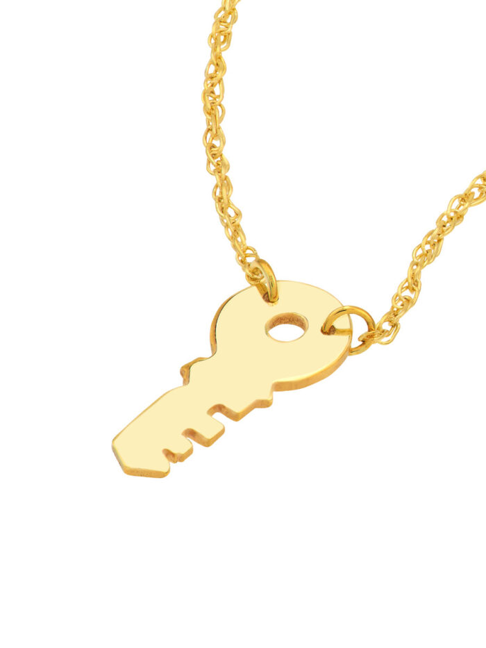 Embrace understated elegance with this charming 14K yellow gold mini key necklace. Designed for everyday wear, its delicate design adds a touch of personality to any outfit. The adjustable chain allows for a perfect fit, making it a versatile piece for any occasion. This mini key pendant is sure to become a treasured addition to your jewelry collection.
