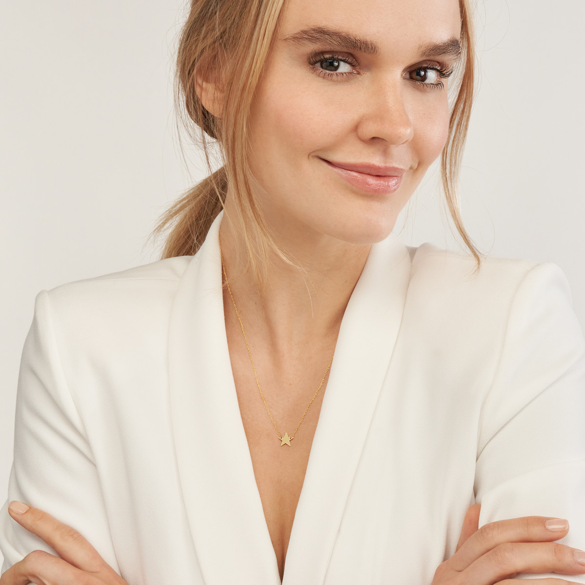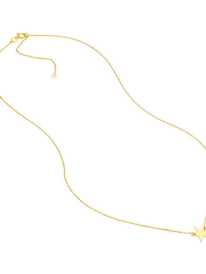Shine bright with our 14K Yellow Gold Mini Star Adjustable Necklace. This delicate piece features a tiny star charm, adding a touch of celestial sparkle to any outfit. Crafted from shimmering 14K yellow gold, it exudes a timeless elegance. The adjustable cable chain ensures a comfortable and personalized fit, making it a versatile addition to your jewelry collection.