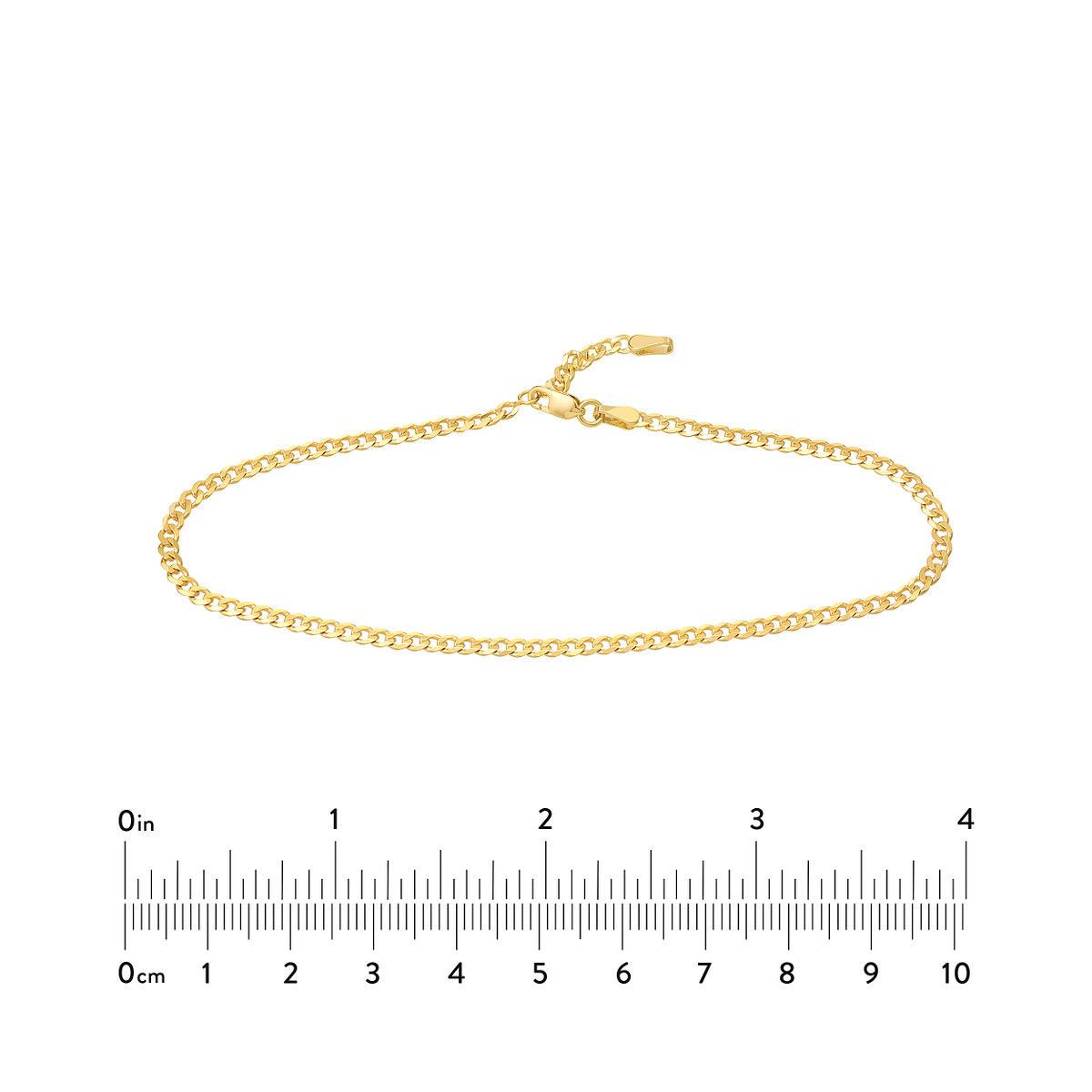 14K Yellow Gold Open Curb Chain Anklet – Adjustable – Lobster Lock – 10 Inch – by Dazyle