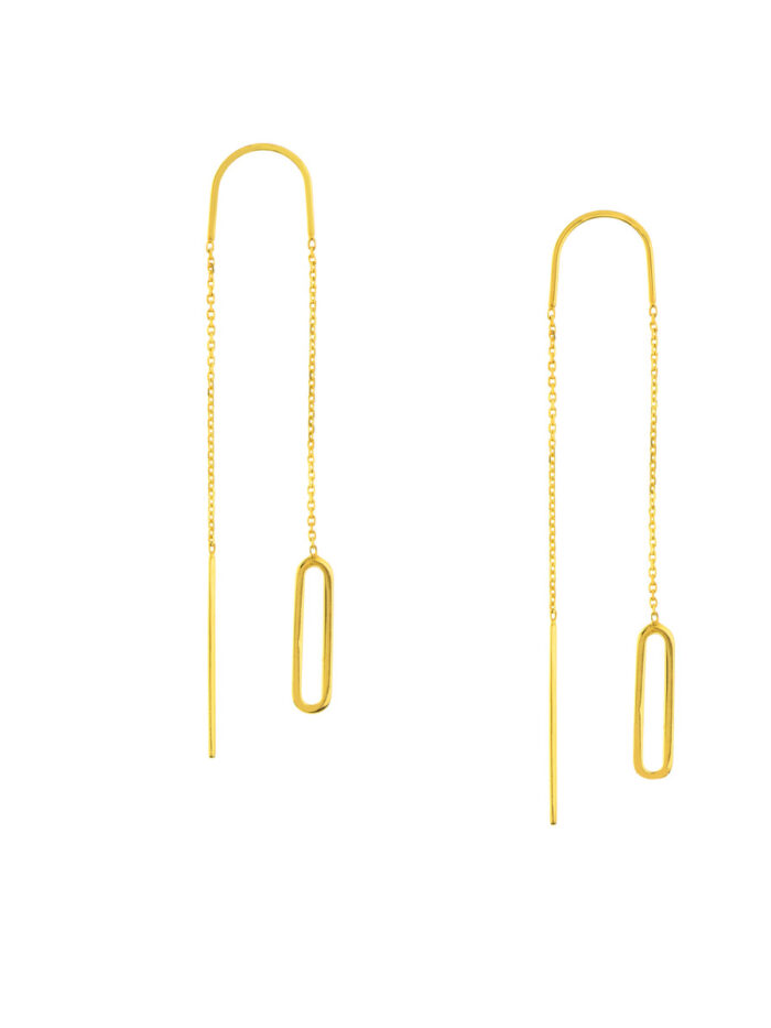 Add a touch of contemporary elegance to your look with these stunning 14K yellow gold open-link threader earrings. The unique open-link design creates a delicate and eye-catching silhouette, while the lightweight construction ensures comfortable wear all day long. These earrings are perfect for adding a touch of sophistication to any outfit, from casual to dressy.