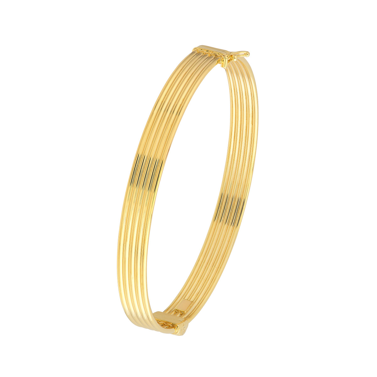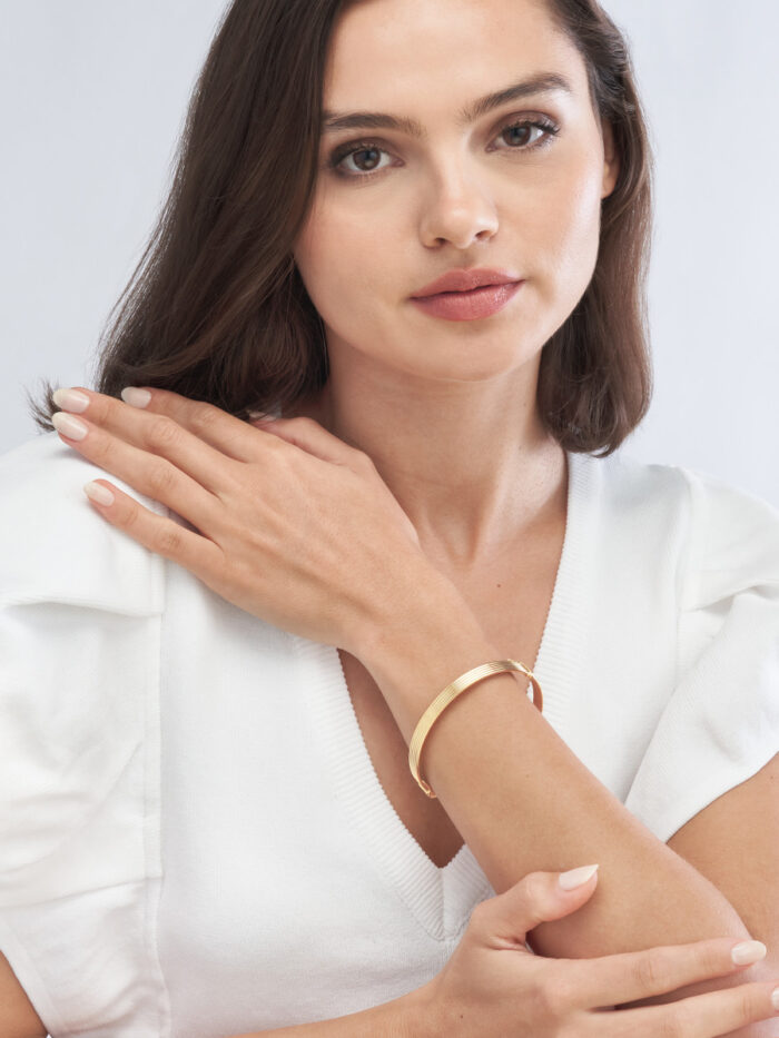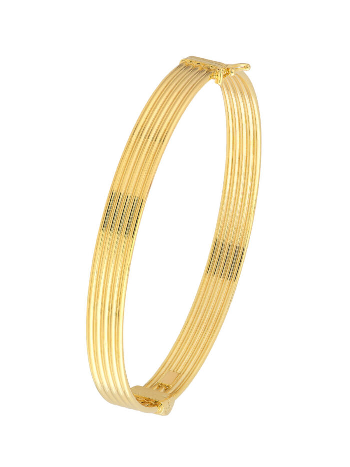 Discover the versatility of our 14K Yellow Gold Polished and Textured Bangle. This stylish bangle features a unique blend of polished and textured surfaces, adding visual interest to your wrist. Crafted from lustrous 14K Yellow Gold and secured with a convenient hinge closure, this bangle is perfect for layering or wearing solo. Measuring 65x55mm, it’s the ideal size to make a statement without being overwhelming.