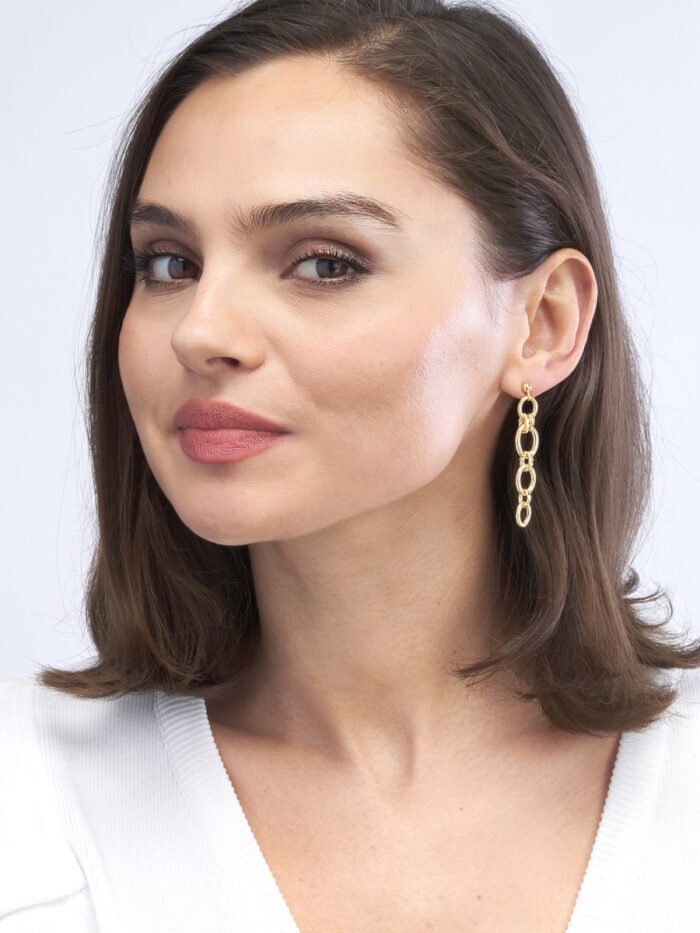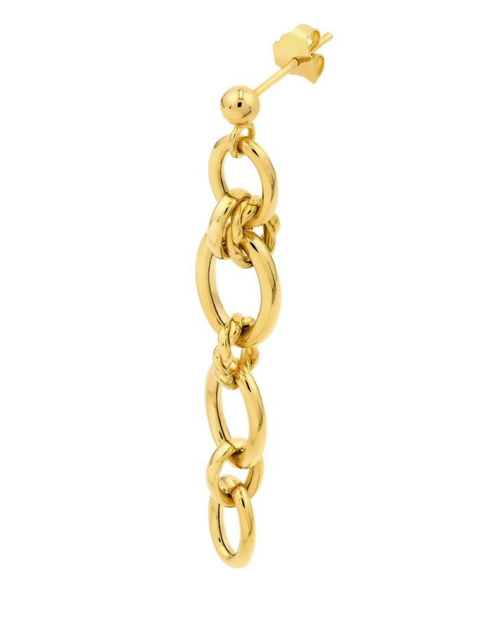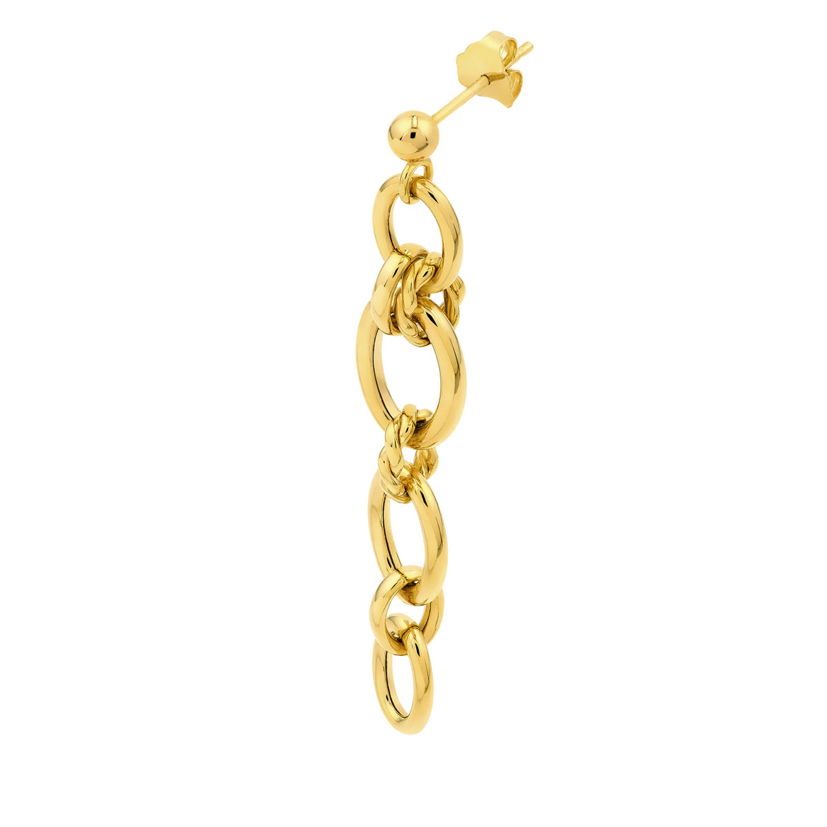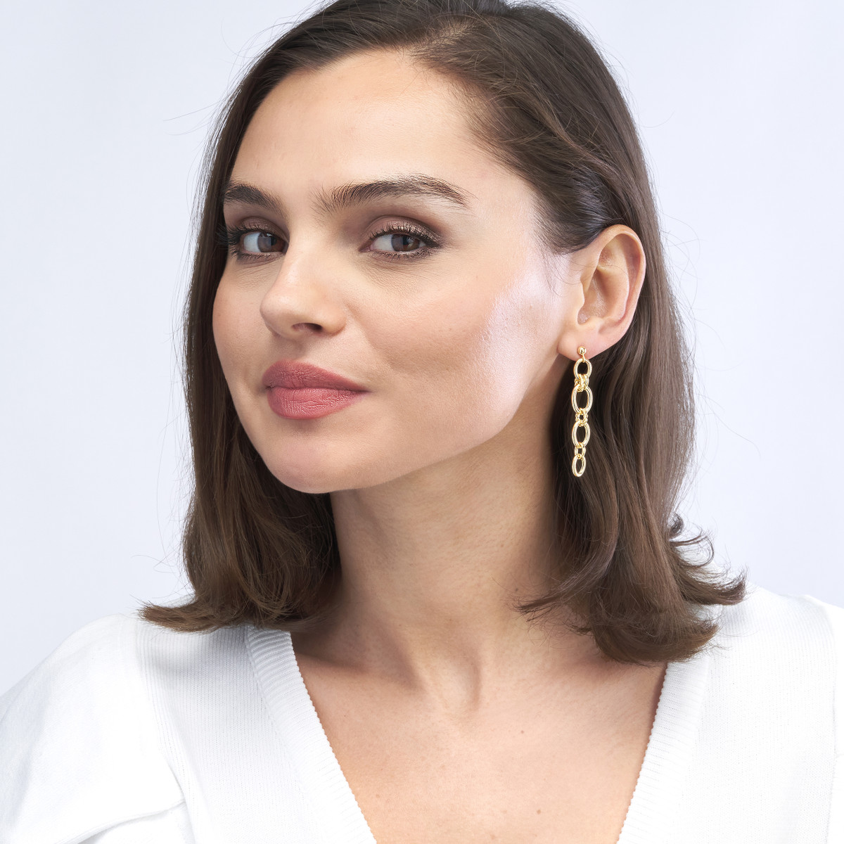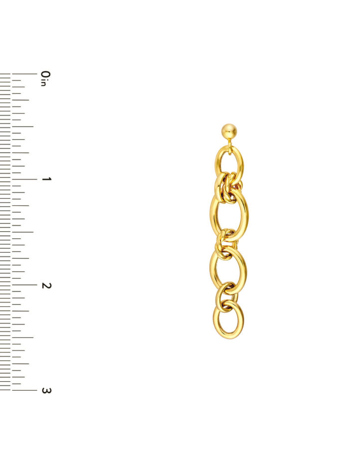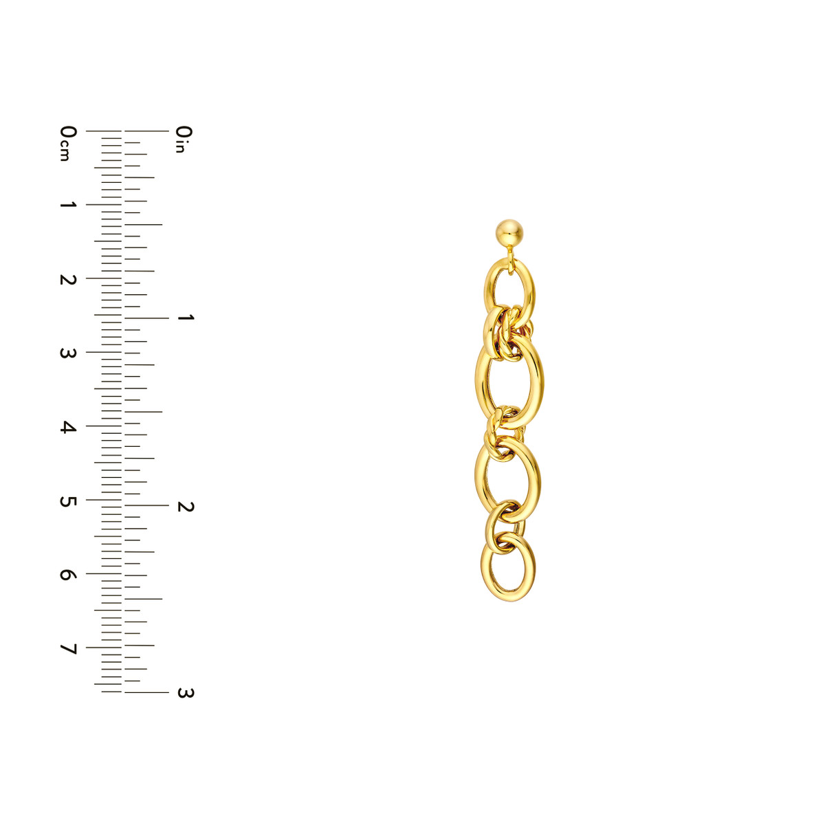Turn heads with these dazzling 14K yellow gold dangle earrings. The polished oval links create a sophisticated and eye-catching design, perfect for adding a touch of glamour to any outfit. These statement earrings are sure to make an impression. The secure post & nut closure ensures a comfortable and secure fit.