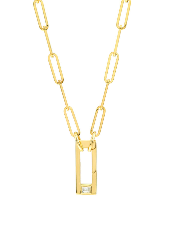 Add a touch of refined charm to your jewelry collection with this exquisite 14K yellow gold Rectangular Diamond Push Lock. This versatile piece is perfect for attaching your favorite charms or pendants to chains, allowing you to create personalized and unique looks.