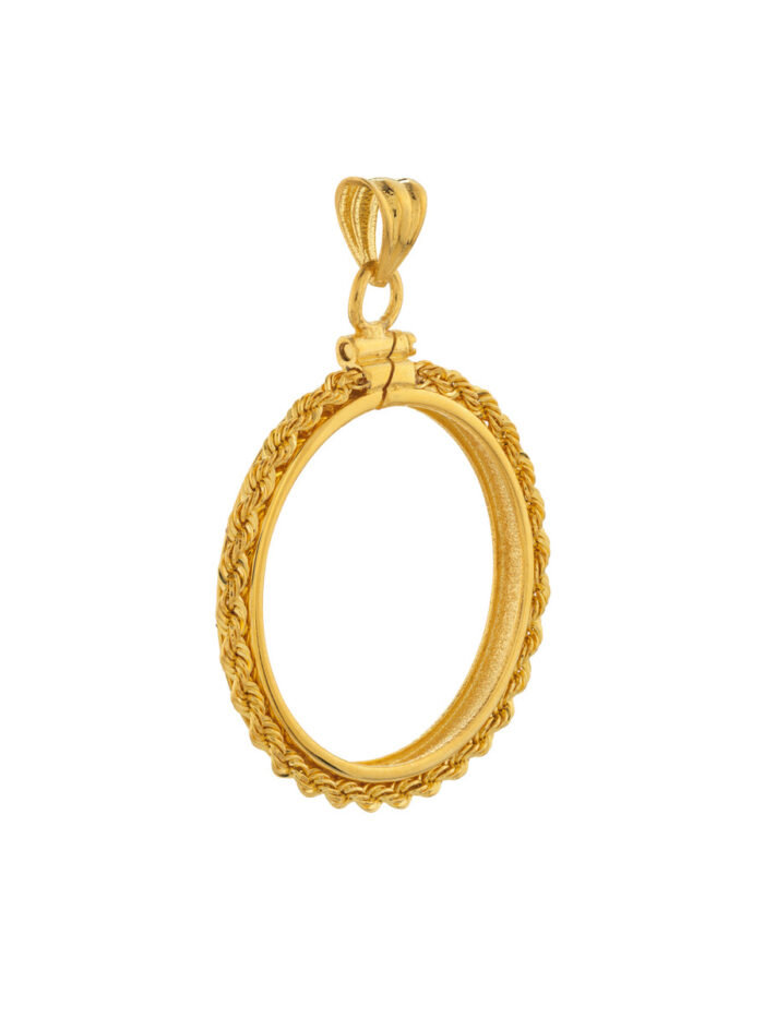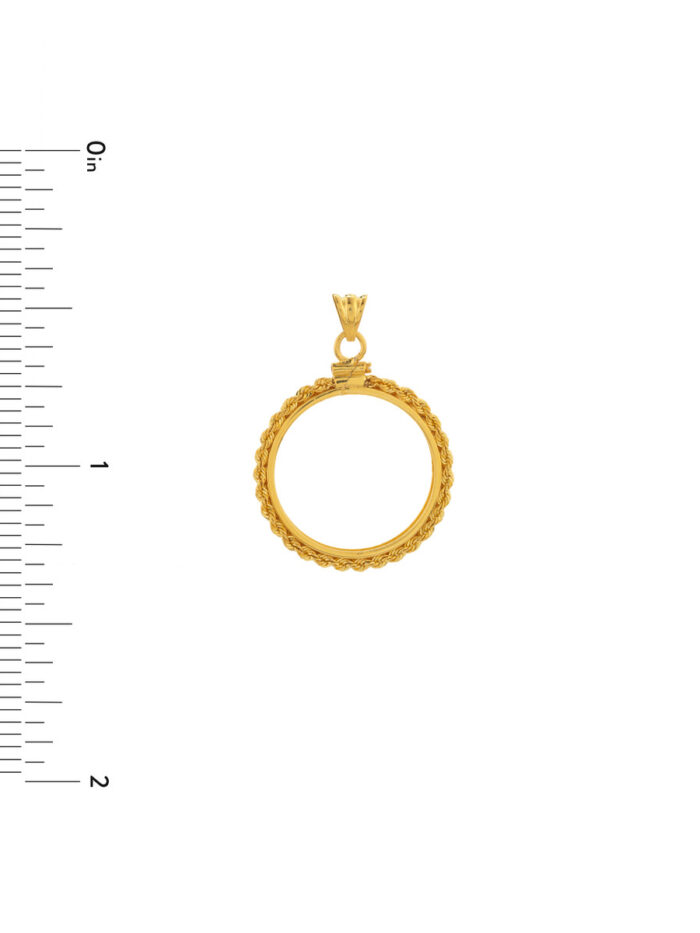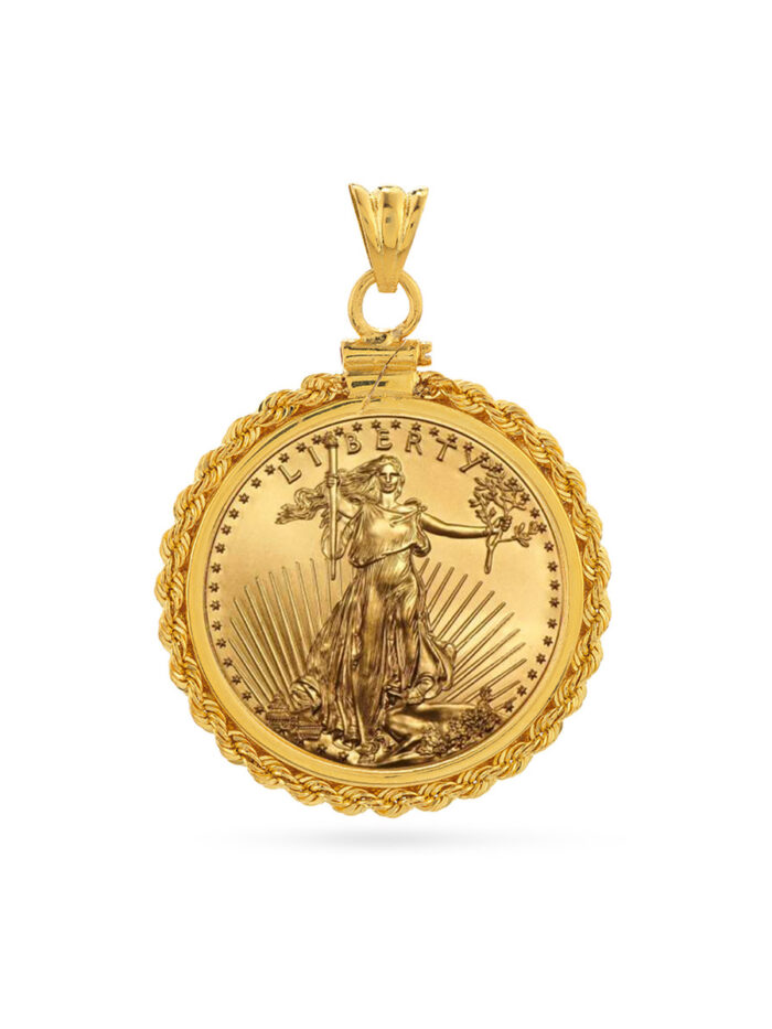 14K Yellow Gold Rope Chain Coin Bezel – American Eagle Coin – Pendant – by Dazyle