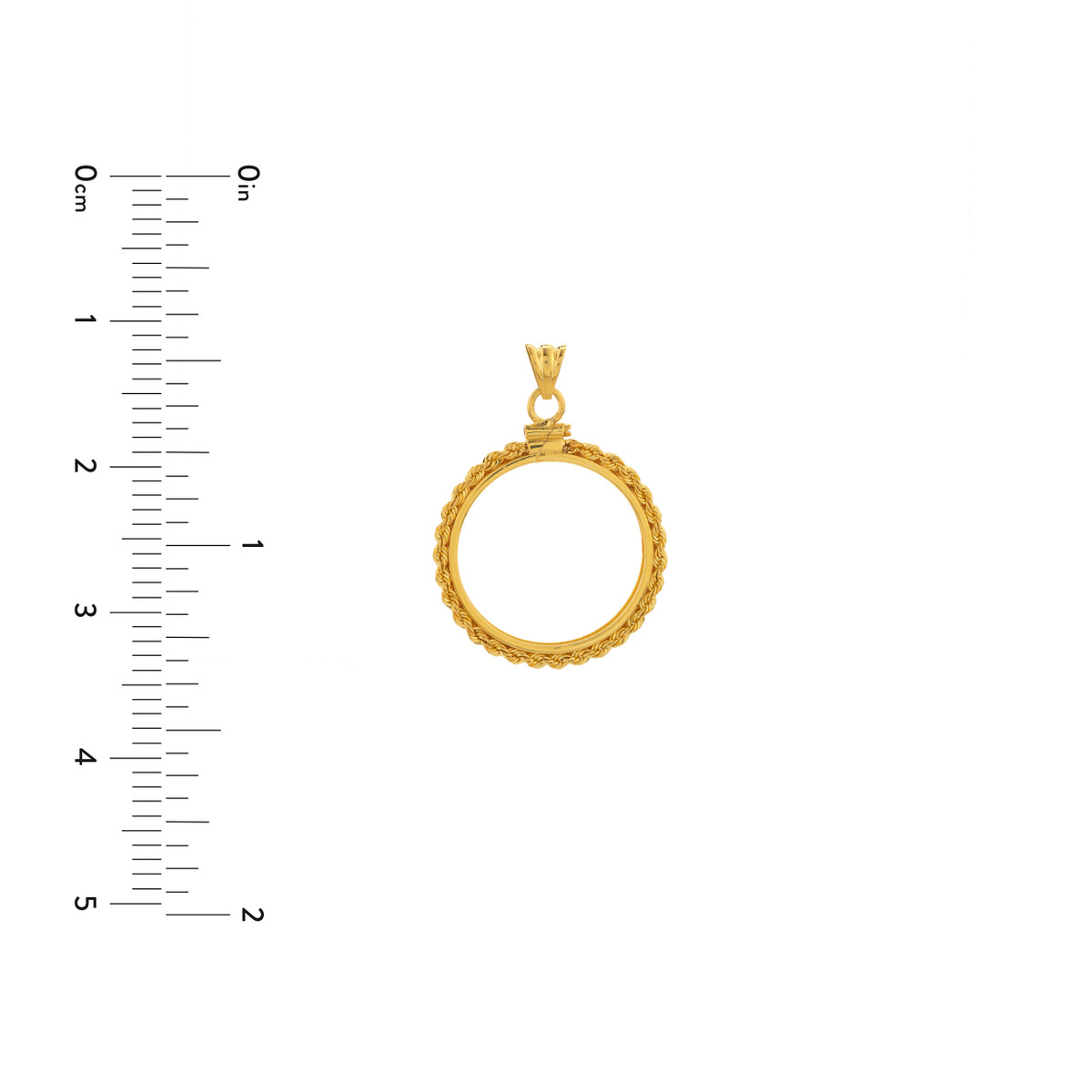 Make a bold statement with this eye-catching 14K yellow gold rope chain bezel, designed to perfectly showcase your 1/2 oz American Eagle coin. The secure screw top closure ensures your coin stays safe and in place. This pendant adds a touch of both classic and modern style to any look.