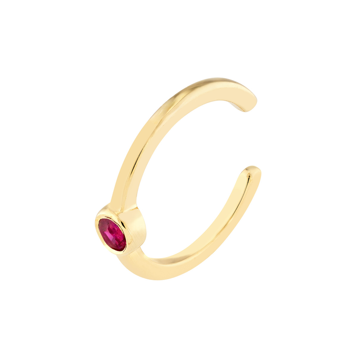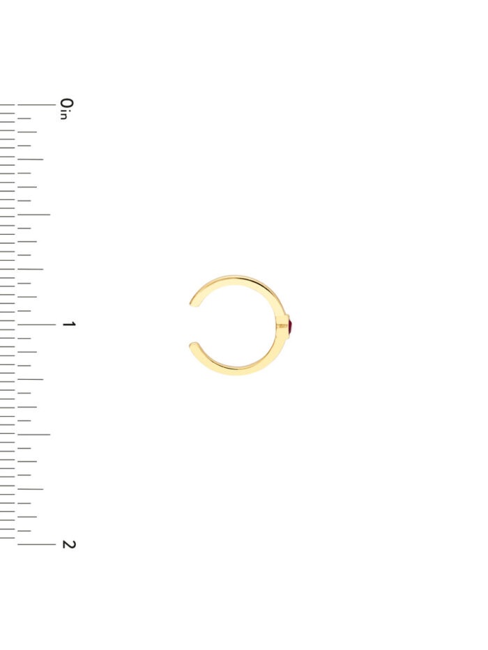 Make a statement with these alluring ruby ear cuffs. Crafted from 14K yellow gold, they feature a captivating ruby bezel that adds a touch of fiery brilliance. The ear cuff design allows for versatile styling, whether you prefer a single cuff for a subtle touch or both for a bolder look. The ruby’s mesmerizing sparkle is sure to catch the eye and elevate any outfit.