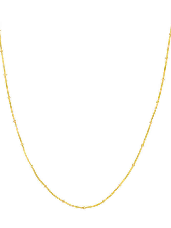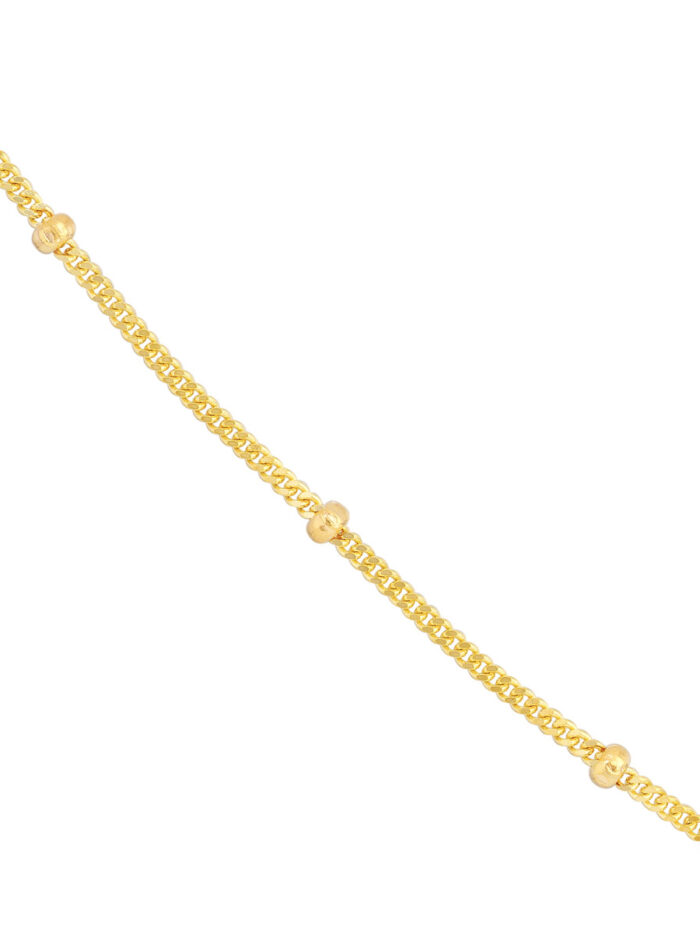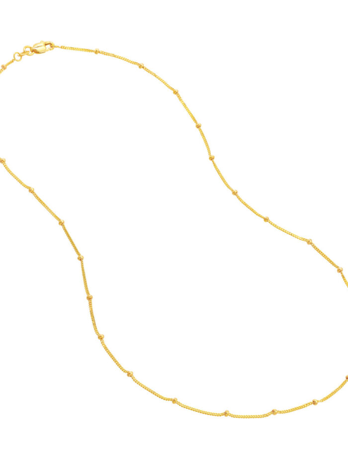 Elevate your style with this unique 14K yellow gold Saturn curb chain. Its distinctive design features delicate bead elements, adding a touch of modern elegance. The smooth, durable curb chain style is both timeless and trendy, making it a versatile piece for everyday wear. The secure lobster closure ensures a comfortable and confident fit.