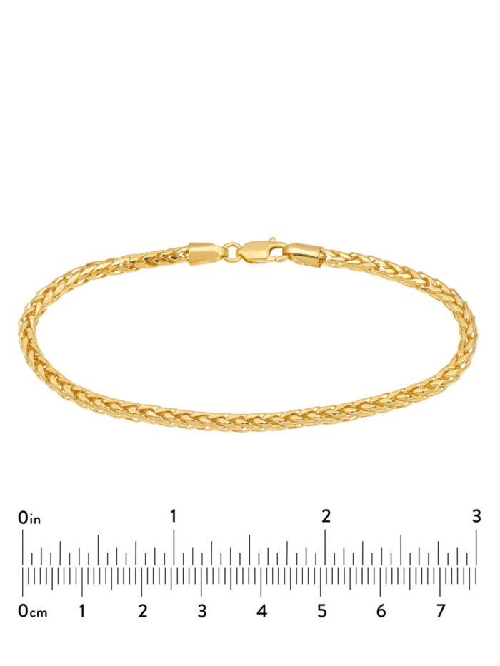 14K Yellow Gold Spiga Chain Bracelet with Lobster Lock Closure – 3.4mm Width – 7.5 Inches – by Dazyle