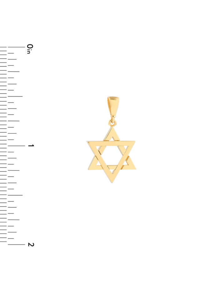 Showcase your faith with this elegant 14K yellow gold Star of David pendant. This traditional design is perfect for adding a touch of meaning to your everyday look. The secure bail closure allows for easy attachment to your favorite chain. Whether worn alone or paired with other pieces, this pendant makes a beautiful and meaningful statement.