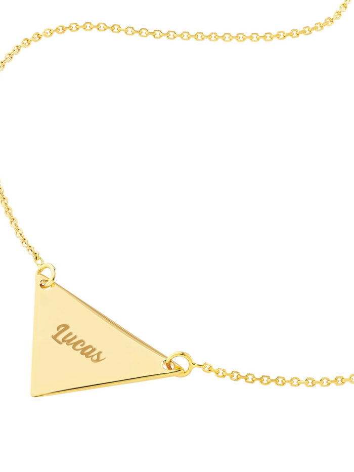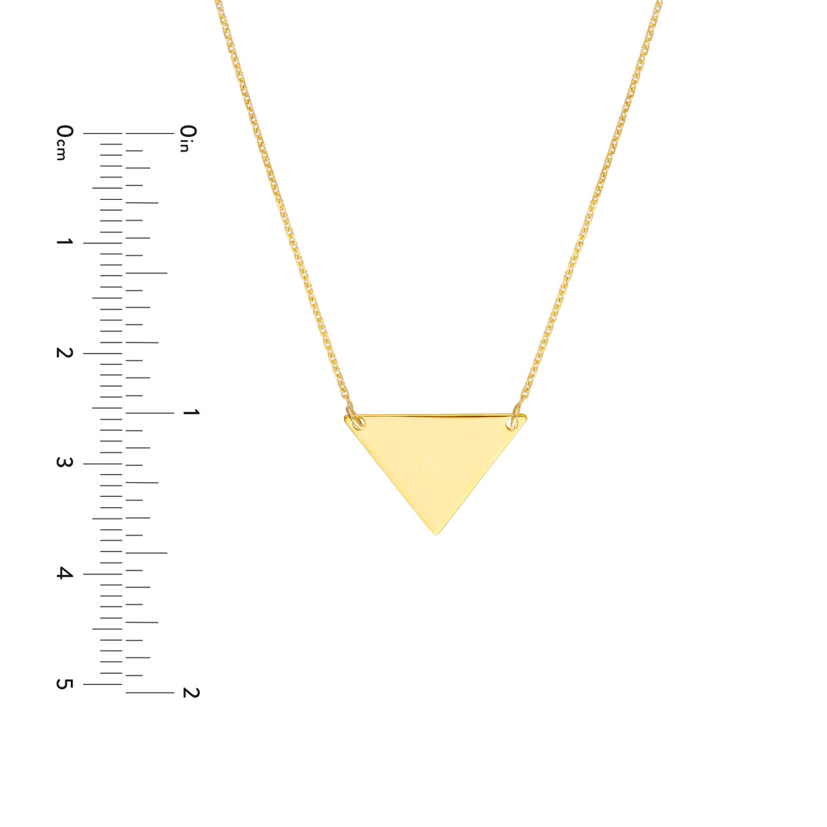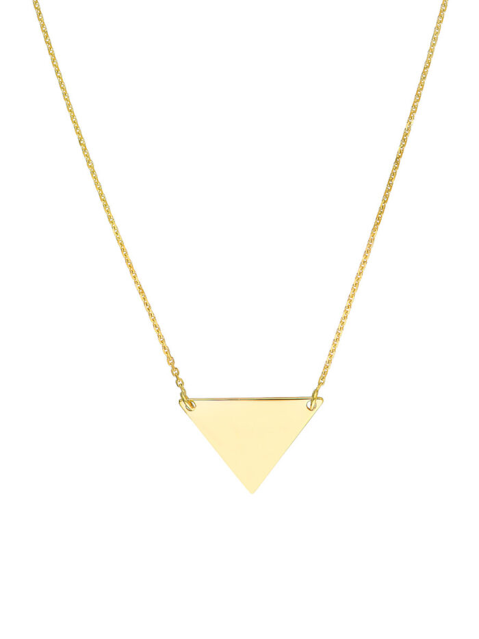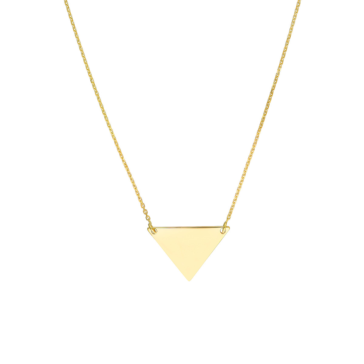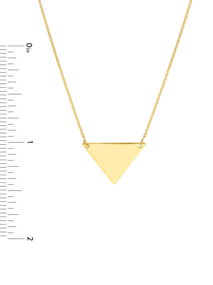 Add a touch of contemporary elegance to your look with this 14K Yellow Gold Triangle Drop Adjustable Necklace. The sophisticated triangle pendant hangs gracefully from an adjustable cable chain, allowing you to customize the fit. This necklace is also engravable, making it a truly unique and personalized piece.