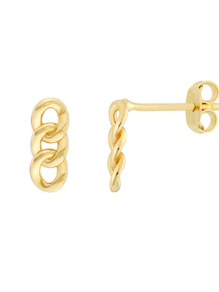 These dazzling triple link earrings are the epitome of modern luxury. Crafted in 14K yellow gold, the triple link design creates a captivating visual effect. Securely fastened with a post & nut closure, these earrings are perfect for any occasion, adding a touch of elegance to your everyday look or dressing up a special event ensemble.