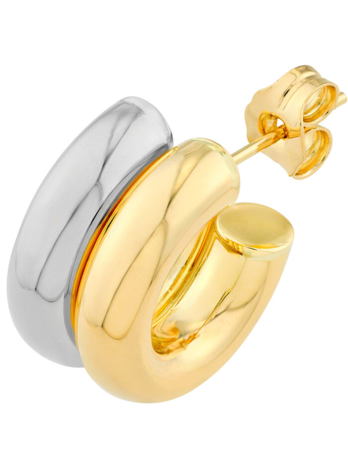 Turn heads with these eye-catching 15mm double-layered, two-tone open hoop earrings. Crafted in a blend of 14K yellow and white gold, these statement earrings exude elegance and sophistication. The double layering adds a touch of modern flair, while the two-tone design creates a stunning contrast.