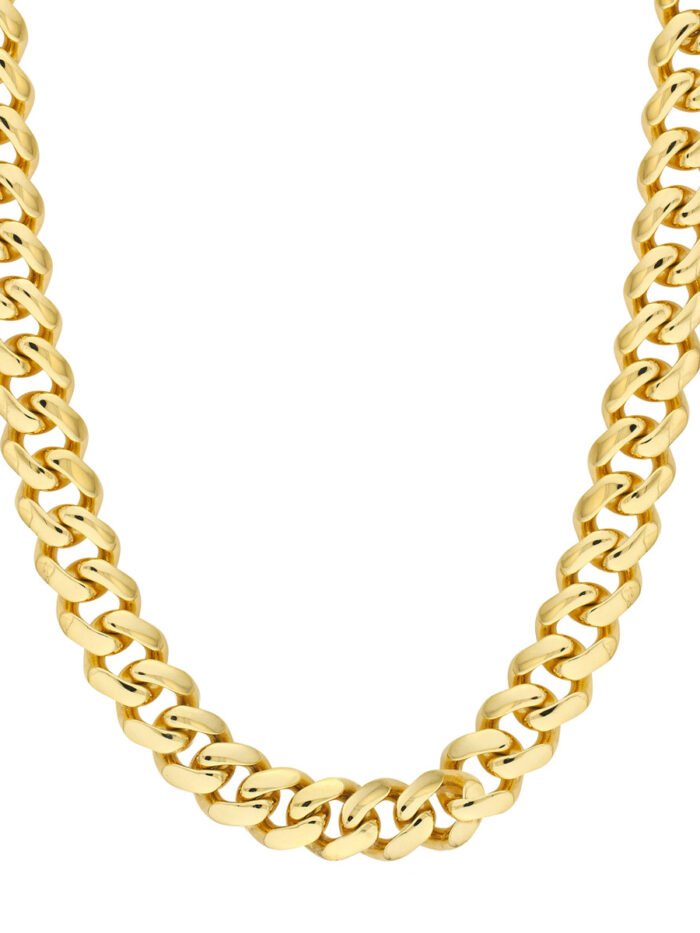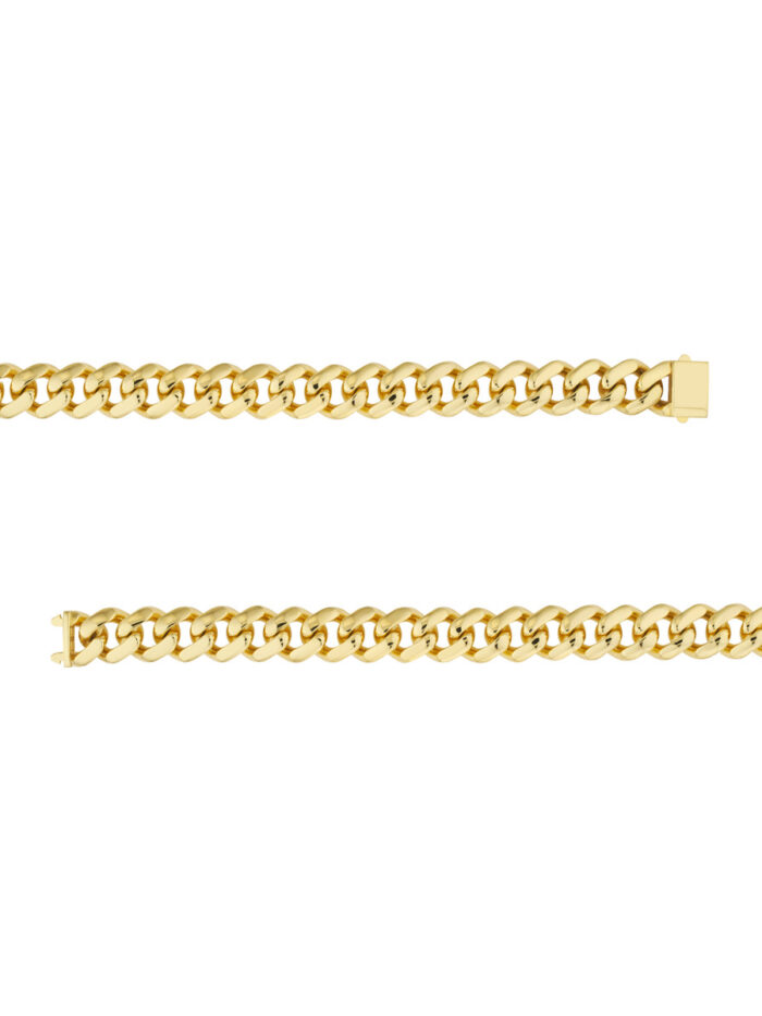 Make a bold statement with this dazzling 16.80mm Miami Cuban chain crafted from 10K yellow gold. Known for its iconic twisted links, the Miami Cuban chain exudes both strength and elegance. The secure box lock closure ensures your piece stays safely in place. At 20 inches in length, this chain is the perfect statement piece for layering or wearing solo.