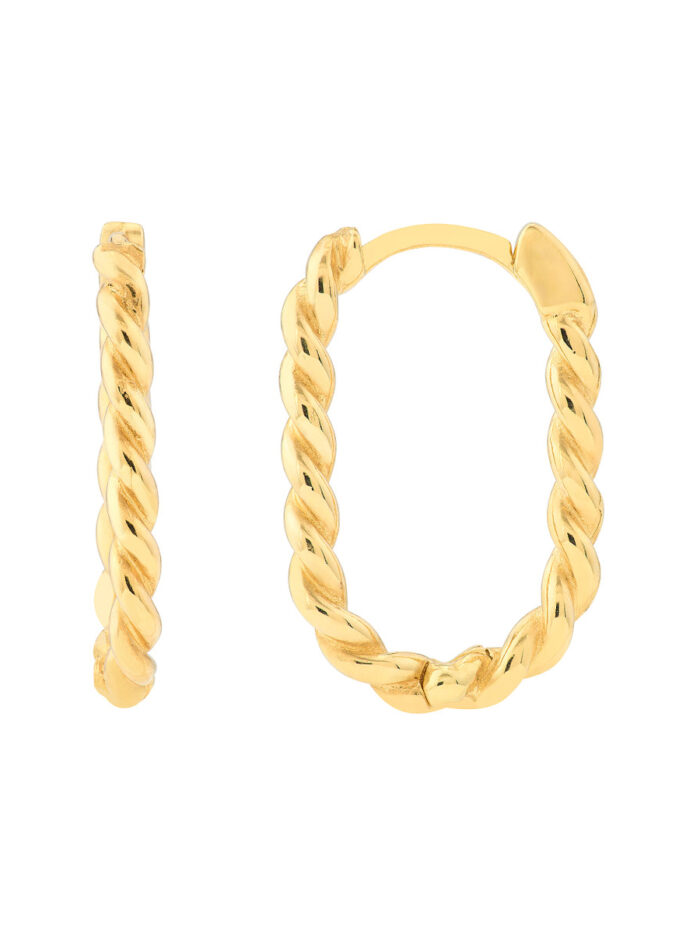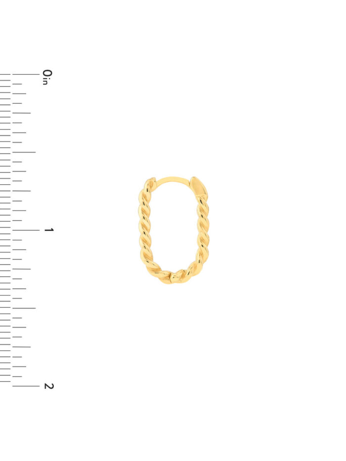 Add a touch of sophistication to your ear stack with these stunning 17.5mm Oval Twist Hoop Earrings. Crafted from lustrous 14K yellow gold, these hoops feature a classic oval shape with a delicate twist detail, adding a touch of modern elegance to your look. The secure hinge closure ensures a comfortable and secure fit, making them perfect for everyday wear or special occasions.