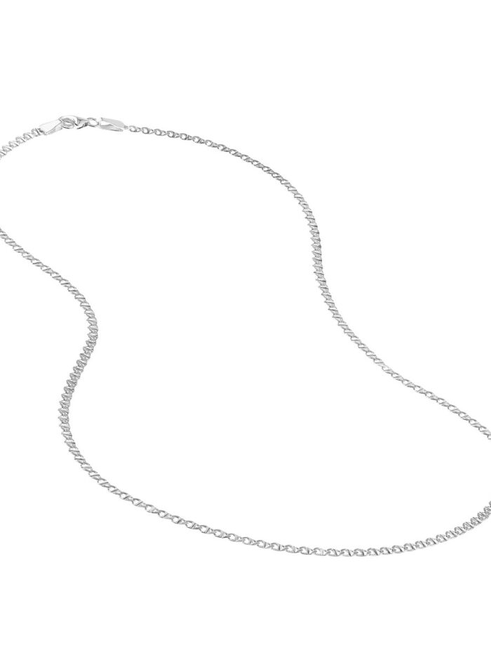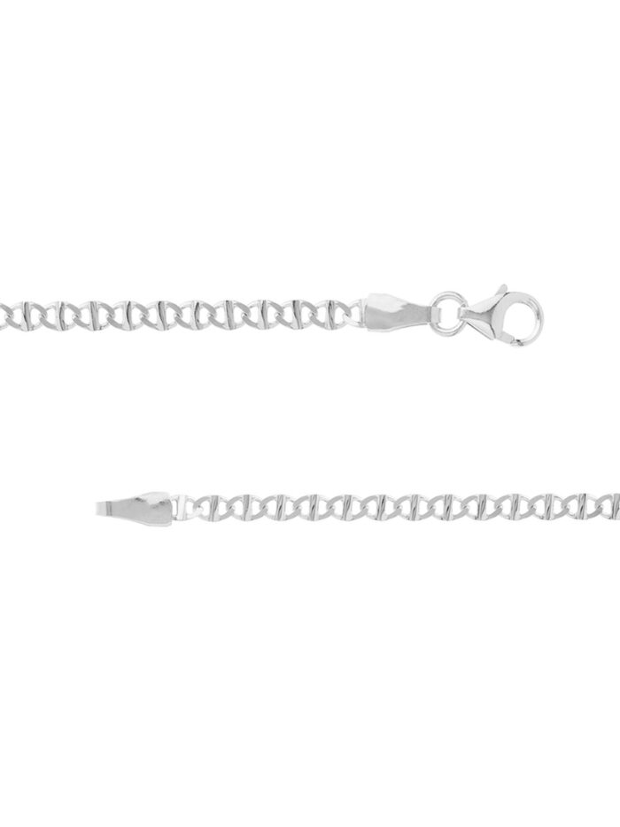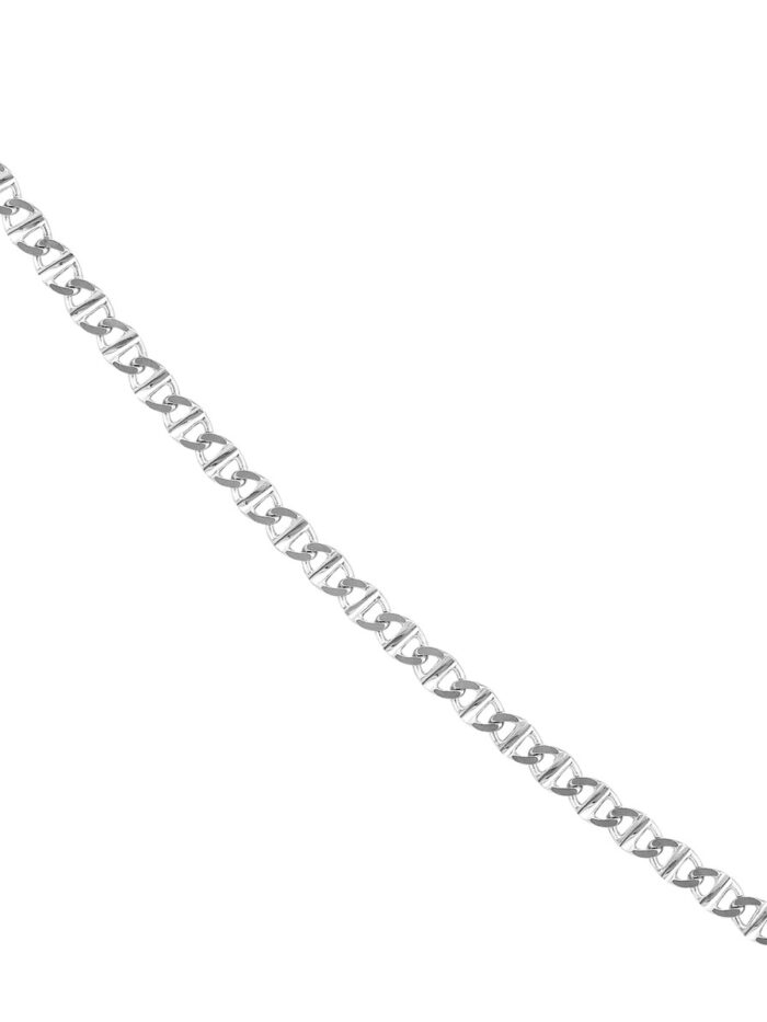 Elevate your look with this stunning 14K White Gold Flat Mariner Chain. Crafted with meticulous attention to detail, this chain features a 2.20mm width and a 50.0 gauge for a luxurious and substantial feel. The classic mariner chain design adds a touch of sophistication, while the secure pear-shape lobster closure ensures a comfortable and confident wear.