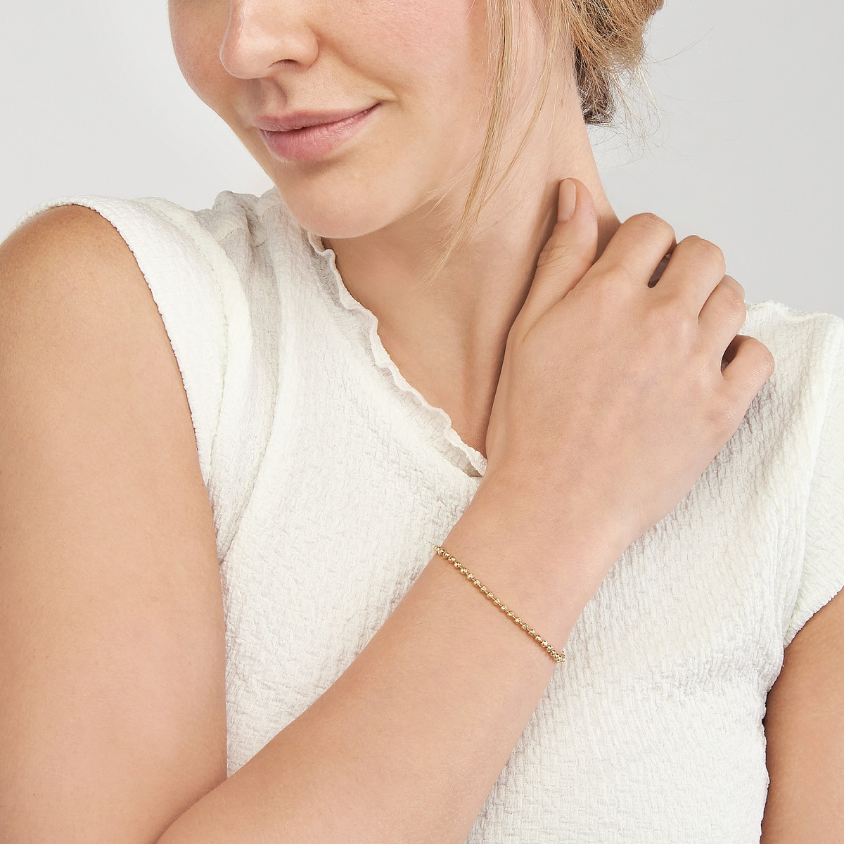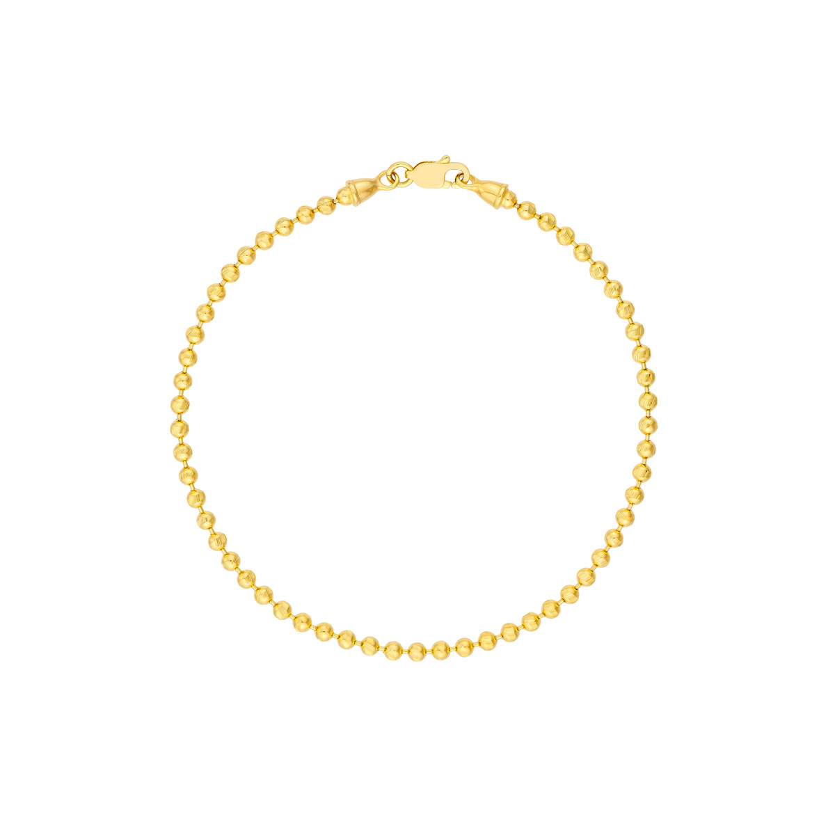 Add a touch of playful sparkle to your wrist with this dainty 2.35mm D/C bead bracelet crafted in lustrous 14K yellow gold. The delicate beads create a beautiful, textured design, while the secure lobster clasp ensures a comfortable fit. This 7.5-inch bracelet is perfect for everyday wear or to stack with your other favorites.
