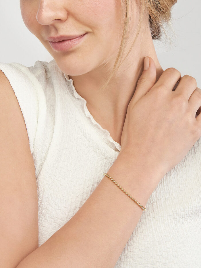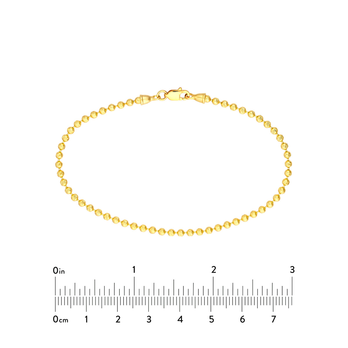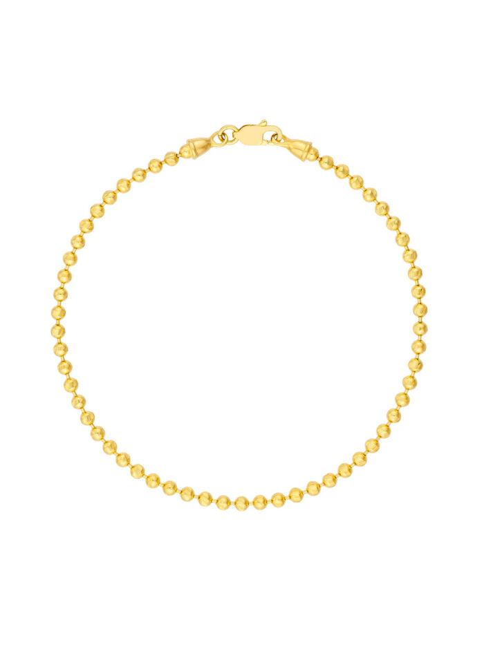 Add a touch of playful sparkle to your wrist with this dainty 2.35mm D/C bead bracelet crafted in lustrous 14K yellow gold. The delicate beads create a beautiful, textured design, while the secure lobster clasp ensures a comfortable fit. This 7.5-inch bracelet is perfect for everyday wear or to stack with your other favorites.
