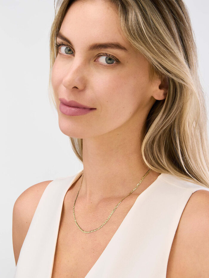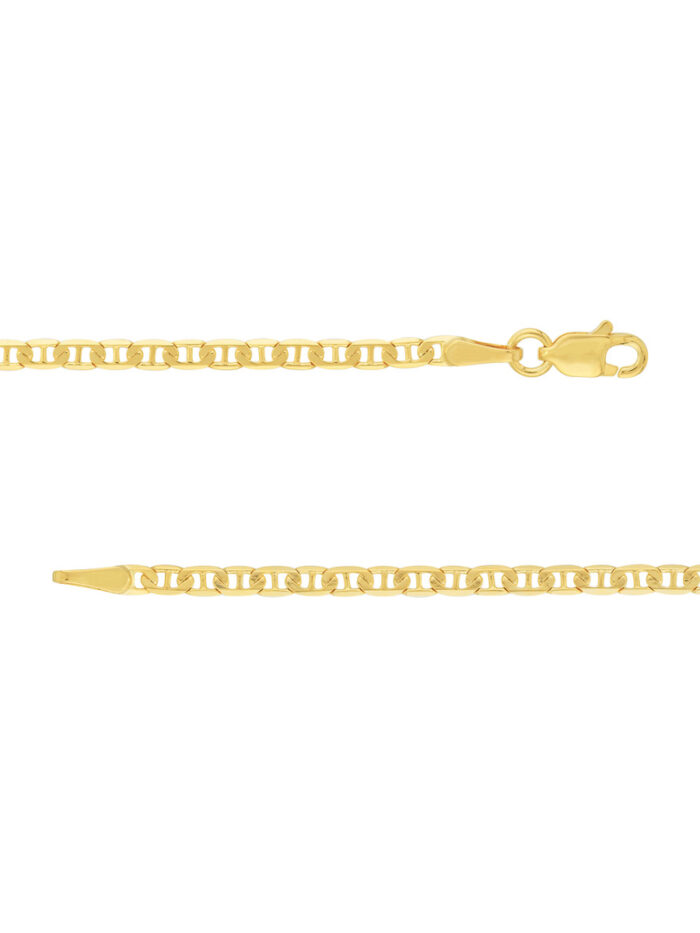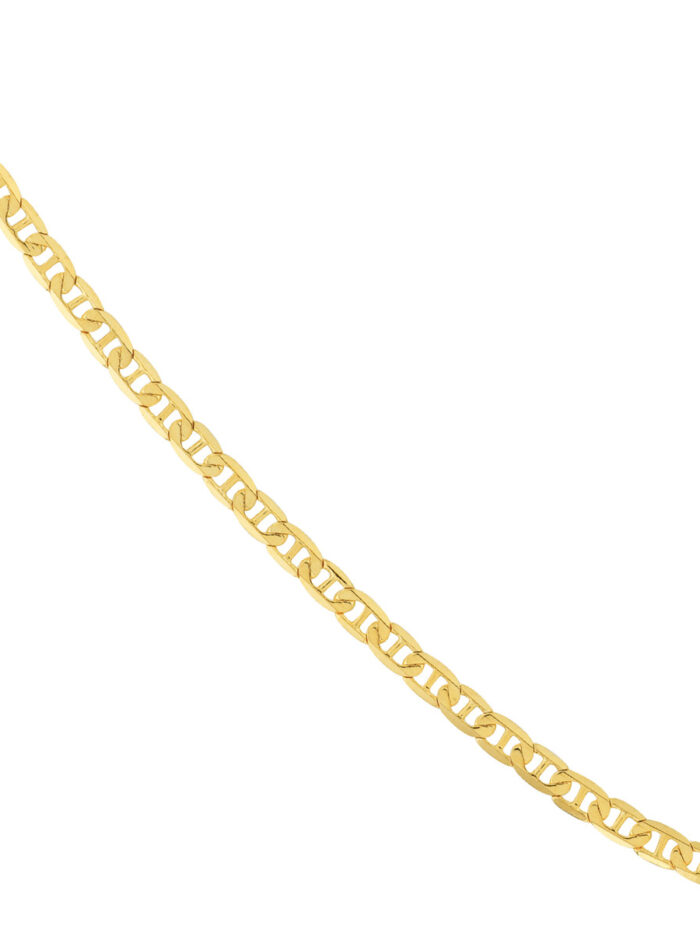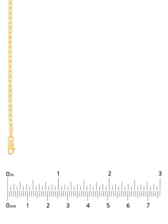 Make a statement with this timeless 2.3mm Mariner Chain in 10K Yellow Gold. The unique, rope-like design adds a touch of sophistication to any look. This solid chain fastens securely with a lobster clasp, ensuring it stays in place all day long. Its 18-inch length is perfect for layering or wearing solo, making it a versatile addition to your jewelry collection.