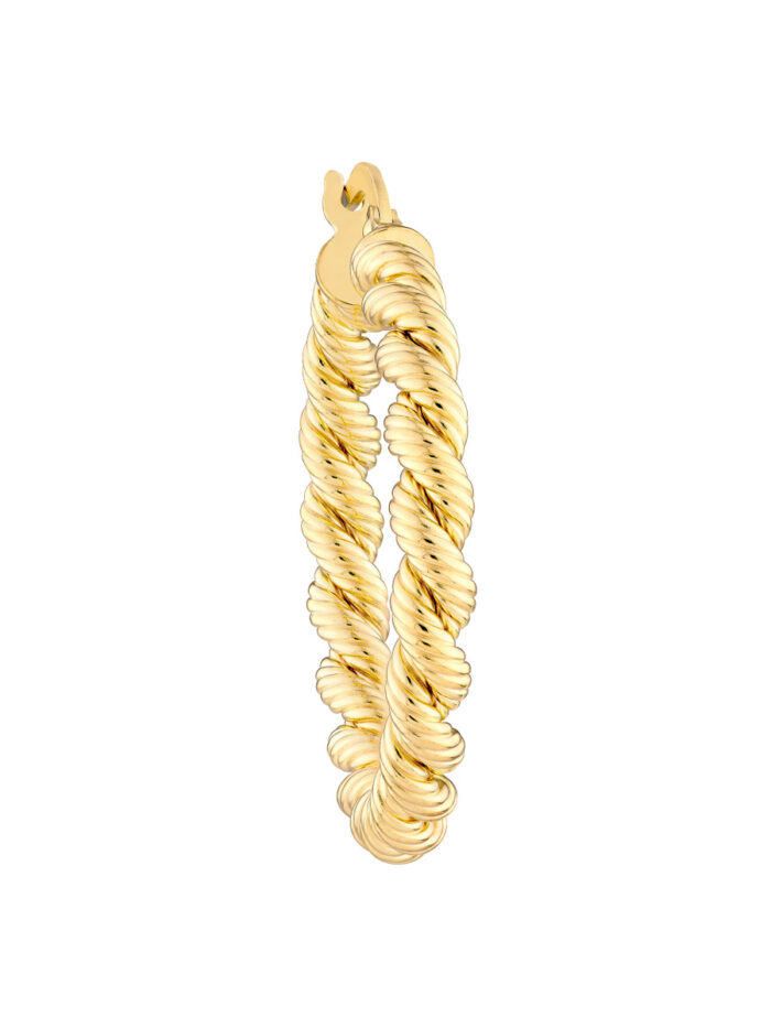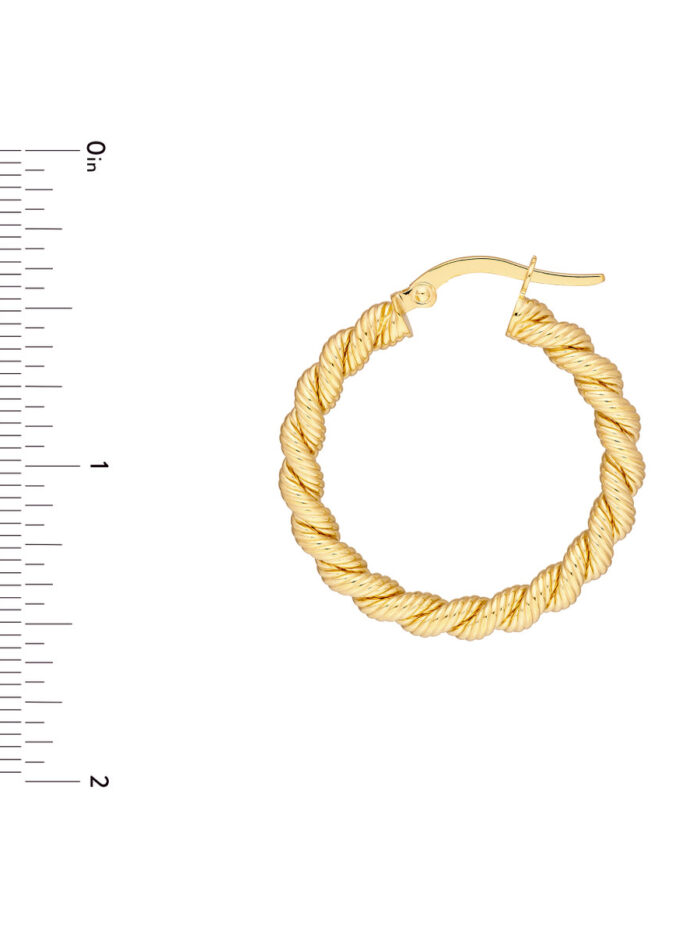 Make a statement with these 20mm Twisted Rope Hoop Earrings. Crafted in gleaming 14K yellow gold, these hoops feature a unique twisted rope design that adds a touch of texture and dimension. Their modern and bold style elevates any look, making them perfect for adding a touch of personality to your everyday outfits or evening ensembles.