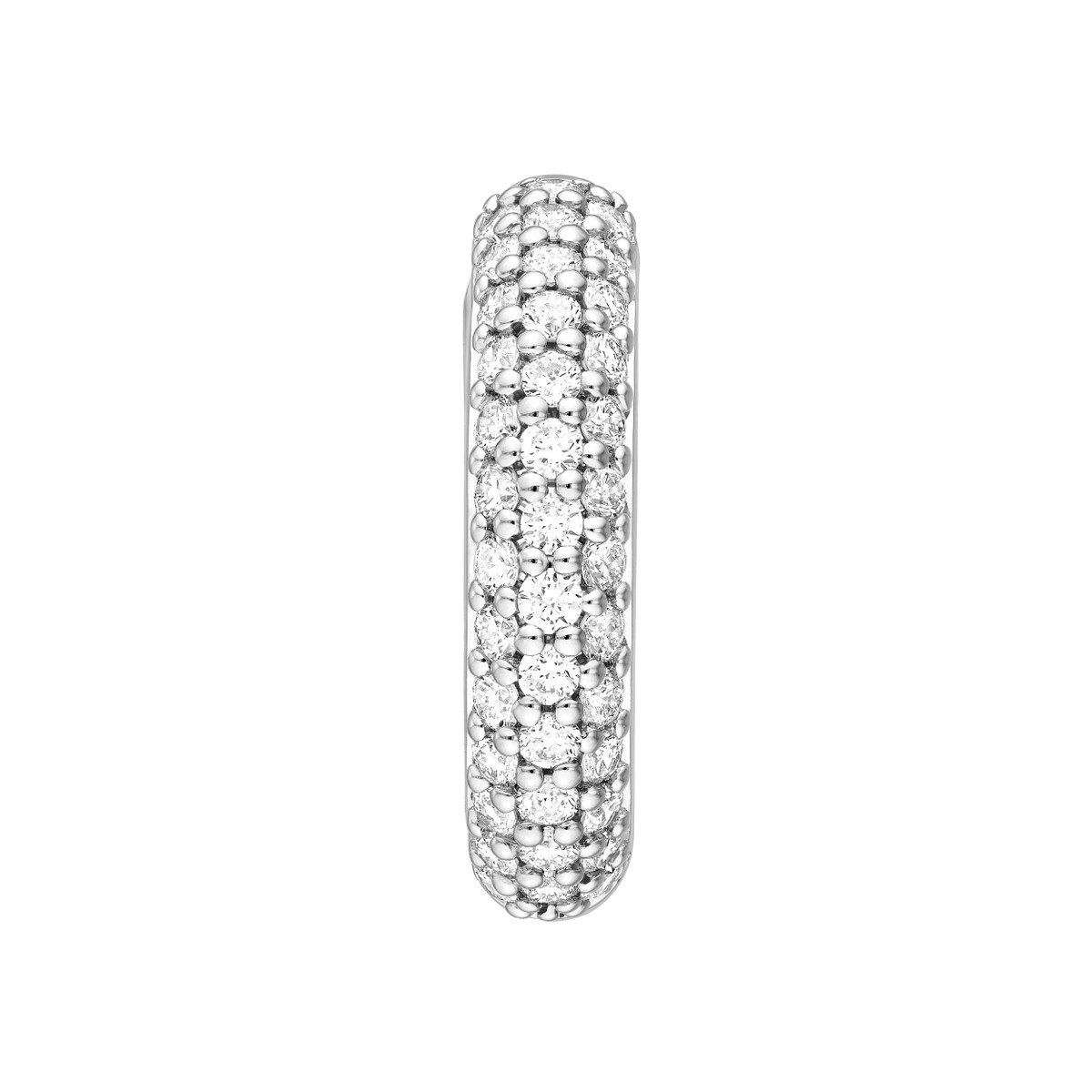 Elevate your everyday style with these captivating 3/4 carat total weight diamond pave huggies. Crafted from lustrous 14K white gold, these earrings boast three rows of dazzling pave diamonds, adding a touch of brilliance to any outfit. The secure hinge closure ensures a comfortable and secure fit for all-day wear.