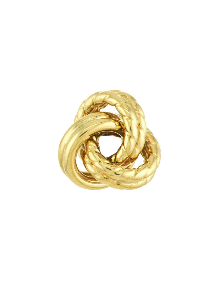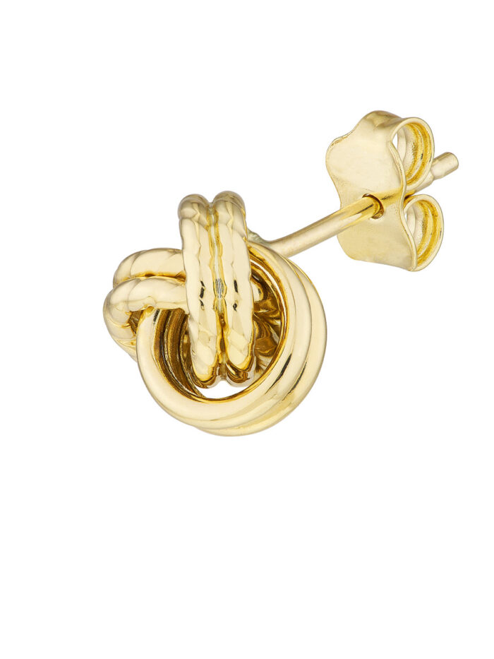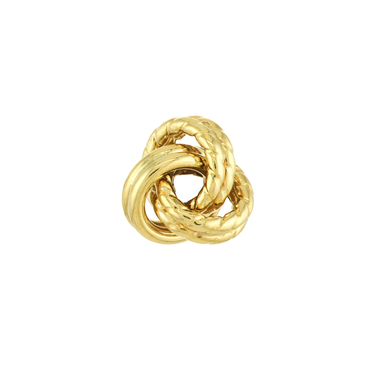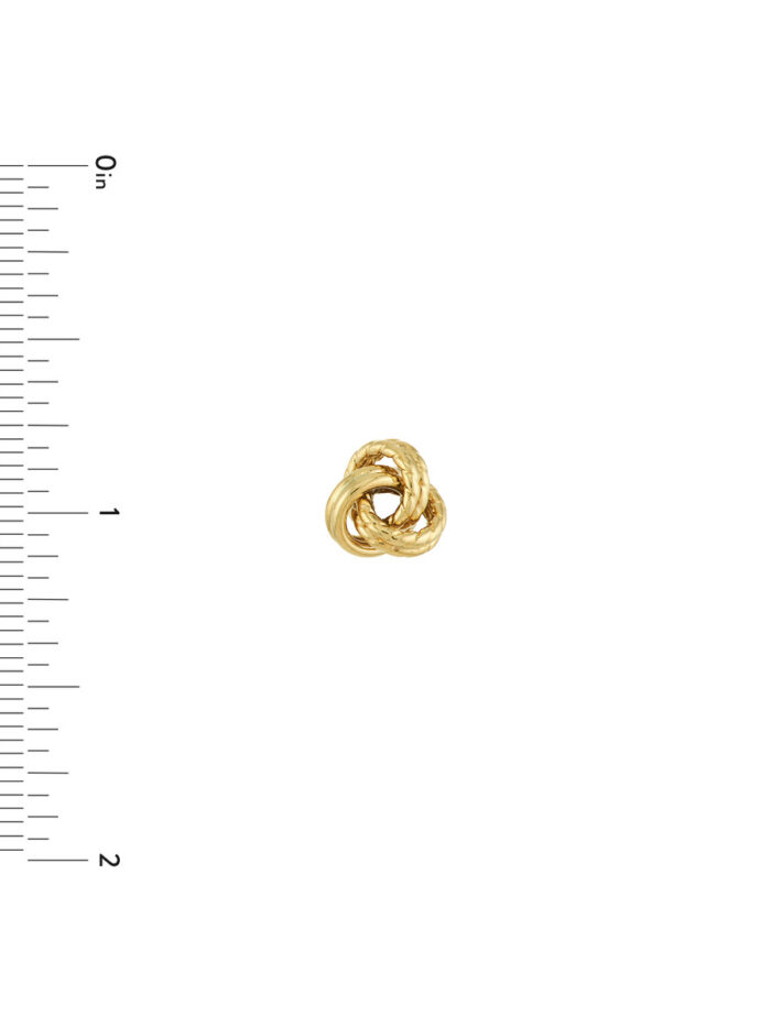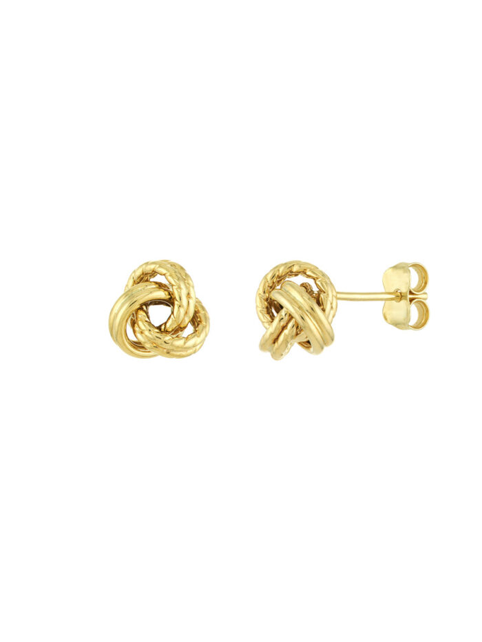 Celebrate everlasting love with these beautifully textured love knot earrings. Crafted from lustrous 10K yellow gold, the three loops interweave to create a captivating visual effect. The secure post & nut closure ensures comfortable wear all day long. These earrings make a timeless and meaningful statement, perfect for everyday wear or special occasions.