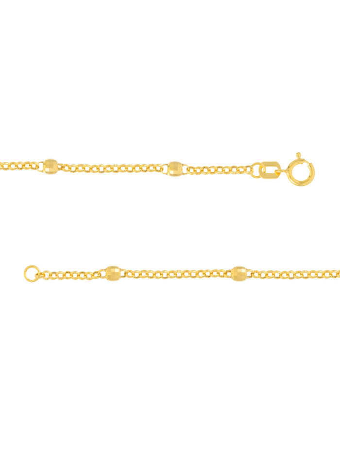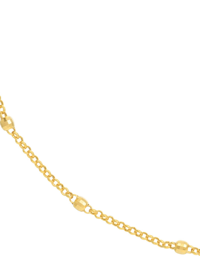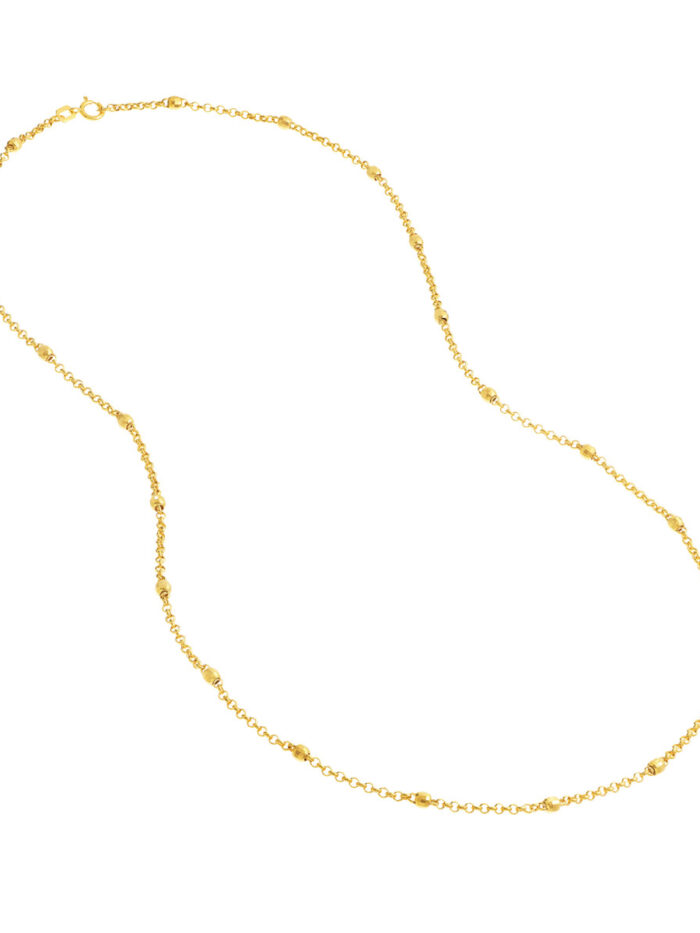 Add a touch of sparkle to your look with the dazzling 3mm Disco Bead Rolo Chain Necklace. This eye-catching necklace features a chain of polished disco beads, perfectly complementing the smooth rolo chain construction. Crafted from 14K yellow gold, this piece exudes both sophistication and playfulness. The secure spring ring closure ensures a comfortable and secure fit.