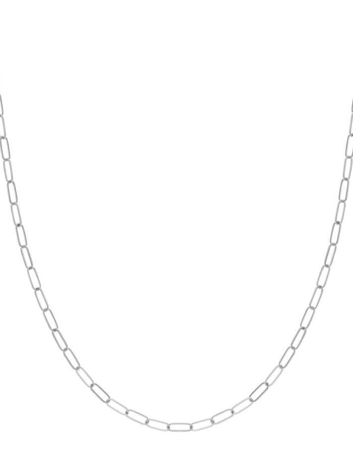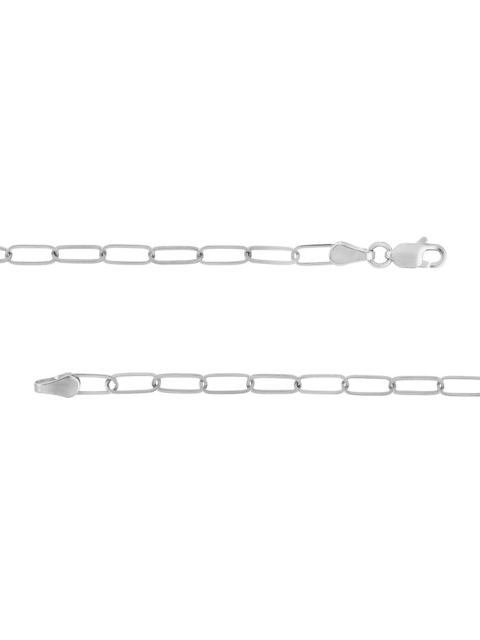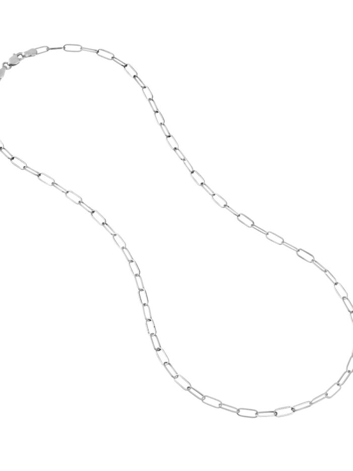 Make a statement with the sleek and modern 3mm Paper Clip Chain. Crafted from 14K white gold, this chain exudes sophistication and elegance. The eye-catching paper clip design adds a touch of contemporary flair. The secure lobster closure ensures a comfortable and confident wear. This 16-inch chain is the perfect length for layering or showcasing on its own.