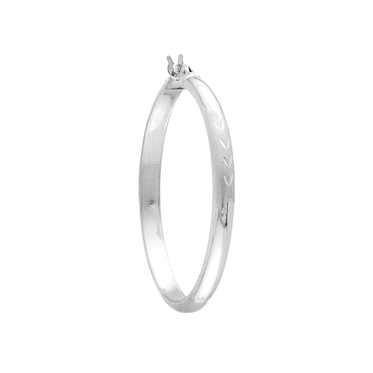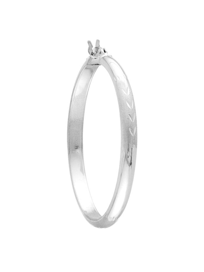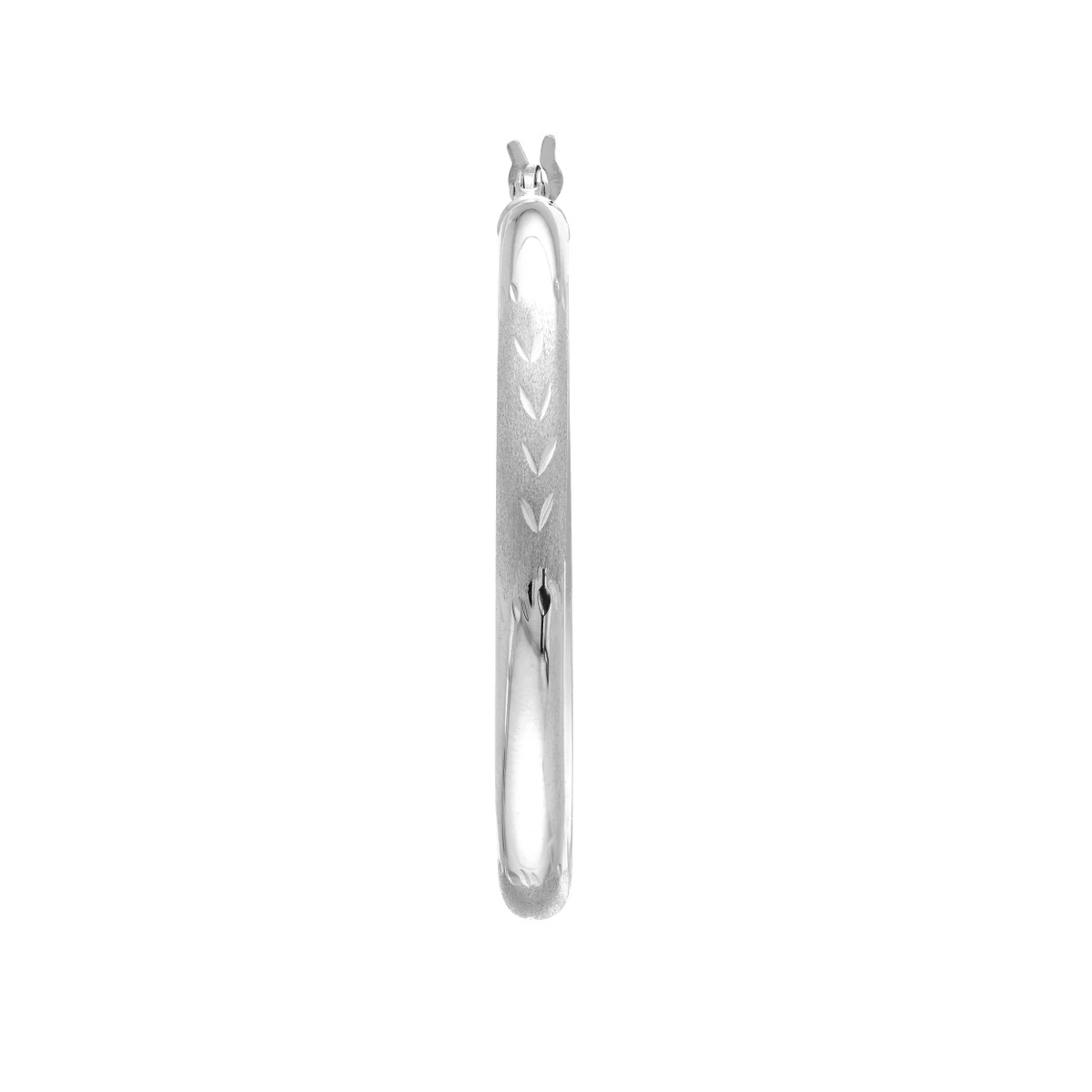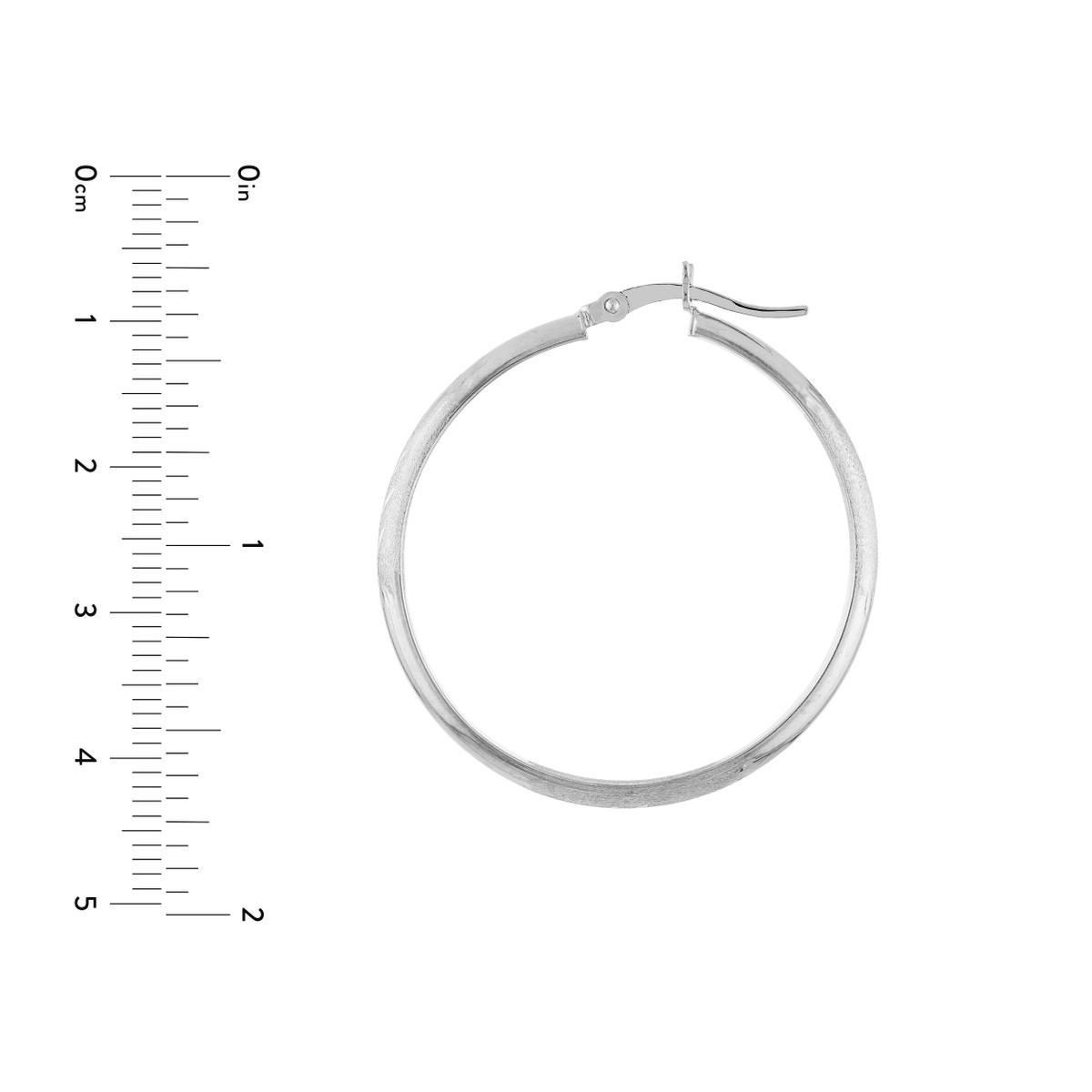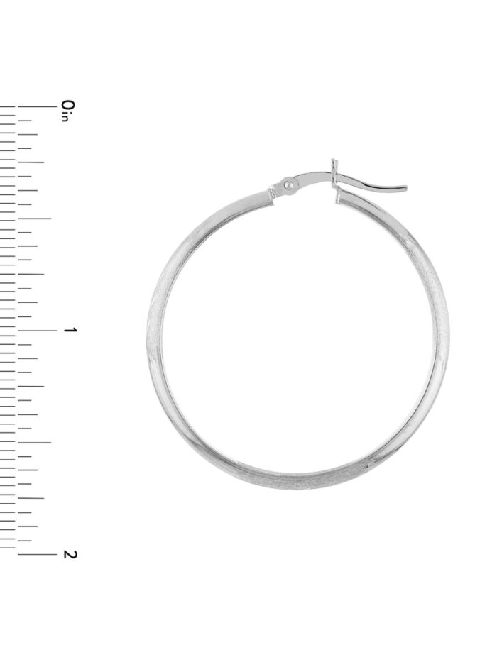 Experience the brilliance of these exquisite diamond-cut Florentine hoop earrings. Crafted from lustrous 14K white gold, these hoops feature a captivating diamond-cut Florentine texture that shimmers beautifully in the light. Measuring 3mm x 35mm, these elegant hoops add a touch of contemporary glamour to any ensemble. The secure hinge closure ensures comfortable wear throughout the day.
