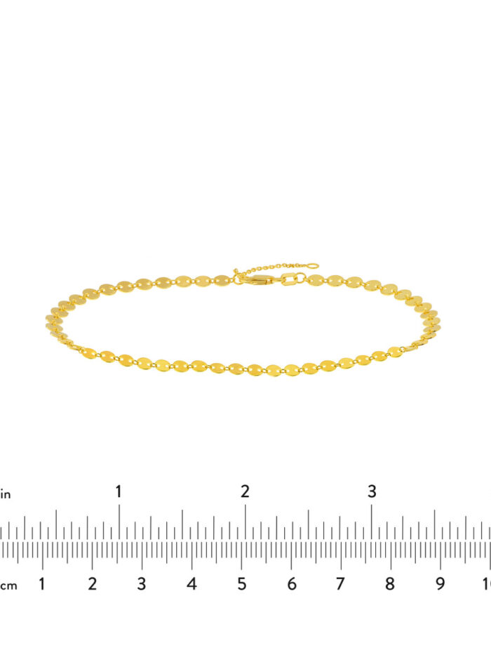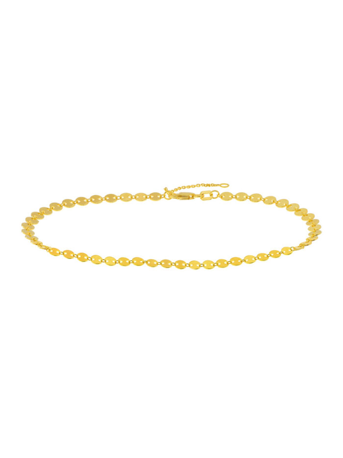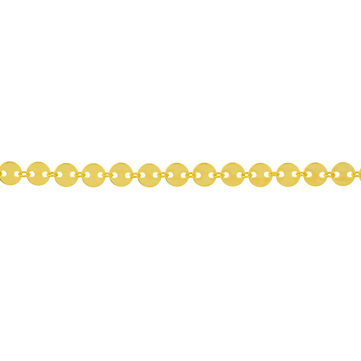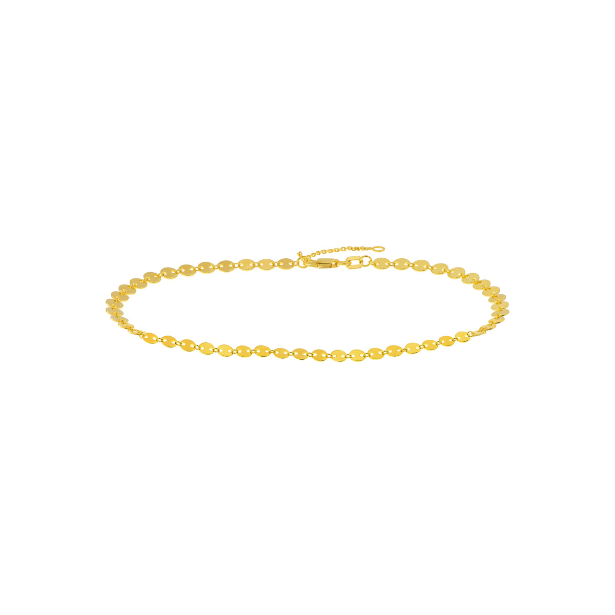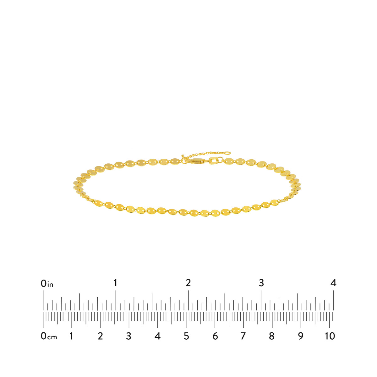 Step up your ankle game with this chic 14K yellow gold full disk anklet. This adjustable anklet features a delicate 4mm full disk charm, complemented by a secure lobster clasp closure. The cable chain design adds a touch of elegance and sophistication. Adjustable from 9 to 10 inches, it’s a perfect complement to any outfit, whether you’re dressing up or down.