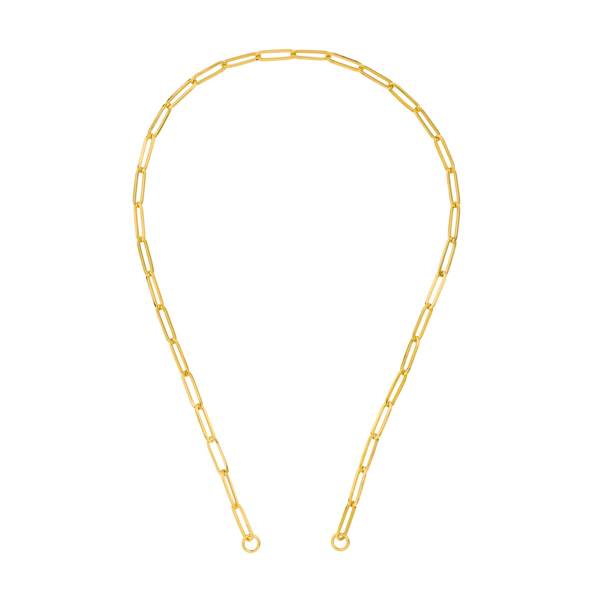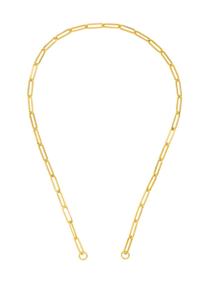Embrace modern style with this bold 5.10MM Paper Clip Split Chain. Crafted in lustrous 14K yellow gold, this chain features a striking paperclip design and unique oversized jump rings at the end caps, allowing you to personalize your look with push locks and charms.