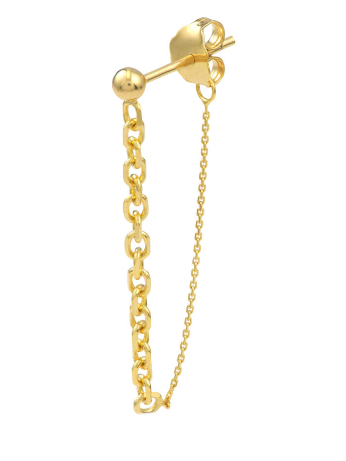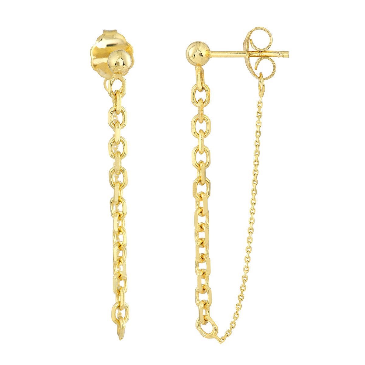 Make a statement with these unique front-to-back earrings. Crafted in lustrous 14K yellow gold, they feature a delicate 50/50 cable chain design that’s both modern and eye-catching. The post and nut closure ensures a secure and comfortable fit. Wear them alone or stack them with other earrings to create a personalized look.