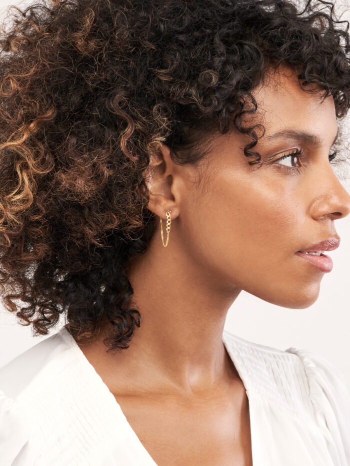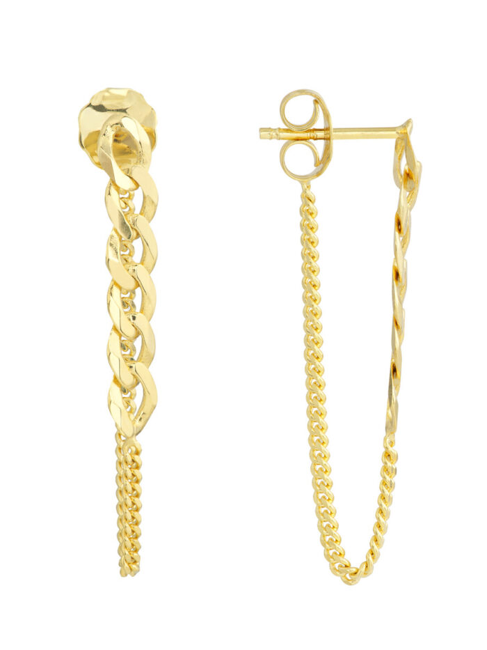 50/50 Curb Chain Front-to-Back Earrings – 14K Yellow Gold – Earrings – by Dazyle