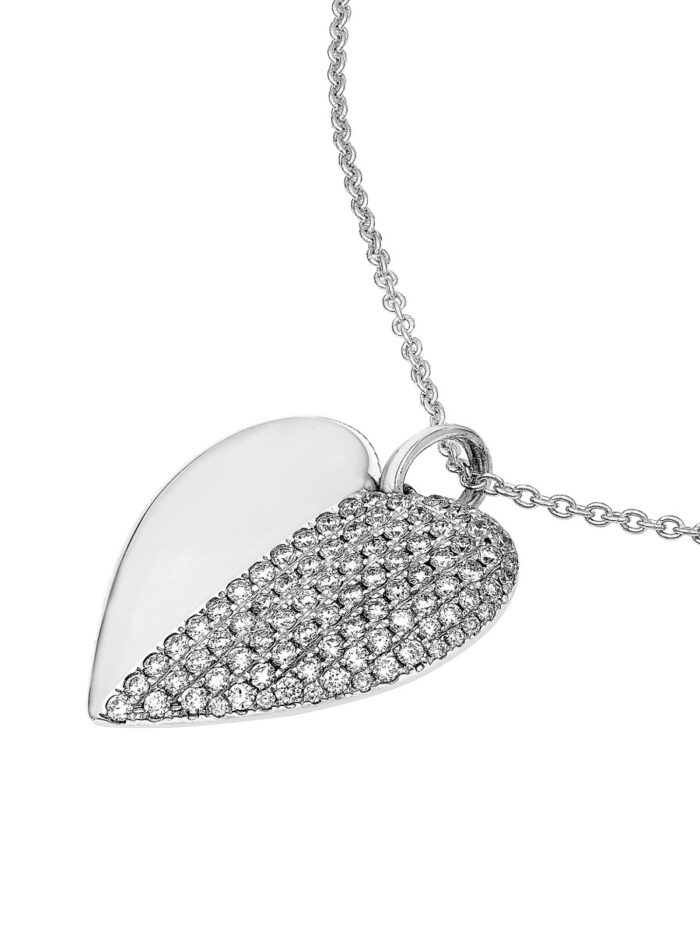 Embrace timeless elegance with this stunning 3/4ctw diamond heart pendant. Crafted in lustrous 14K white gold, the pendant features a captivating heart shape adorned with brilliant diamonds. The classic bail design allows for easy attachment to a chain of your choice. This exquisite pendant is a perfect gift for any occasion, symbolizing enduring love and sophistication.