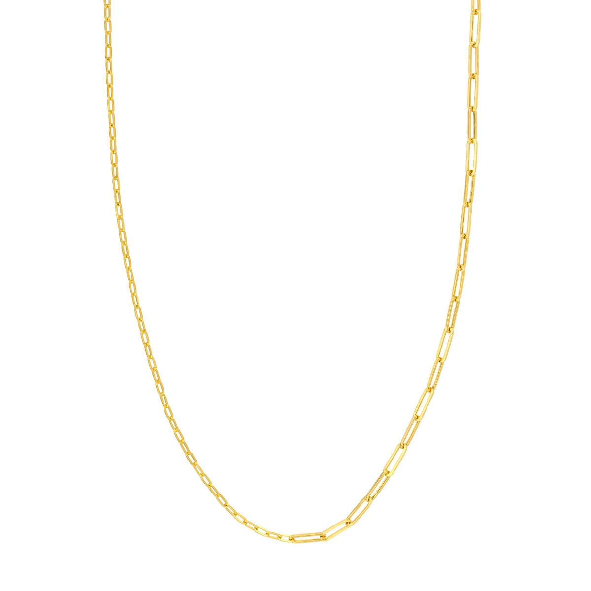 Add a touch of modern sophistication to your look with our 50/50 Paper Clip Chain Necklace. This eye-catching design features a blend of solid and hollow links in a unique paper clip pattern, creating a dynamic and textured look. Crafted in lustrous 14K yellow gold, this necklace is a statement piece that’s perfect for elevating any ensemble. The 18-inch length is versatile and flattering.