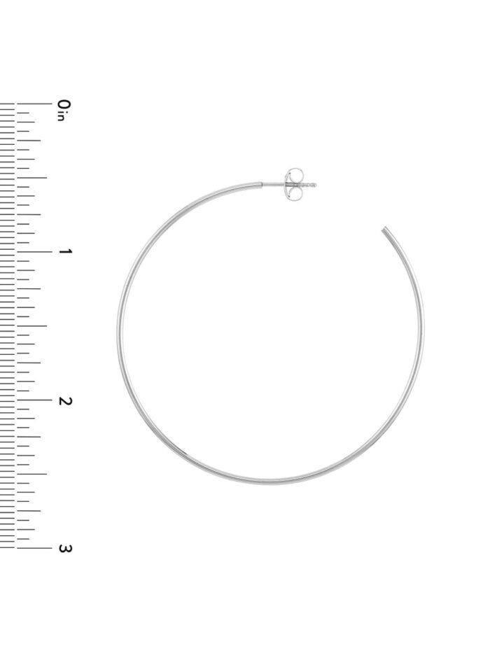 Add a touch of understated elegance to your look with our 50mm 14K White Gold Hoop Post Earrings. These lightweight hoops feature a classic design that complements any outfit, from casual to dressy. The 50mm diameter creates a statement without being overwhelming, making them perfect for everyday wear. Securely fastened with a post & nut closure, these earrings are both stylish and comfortable.