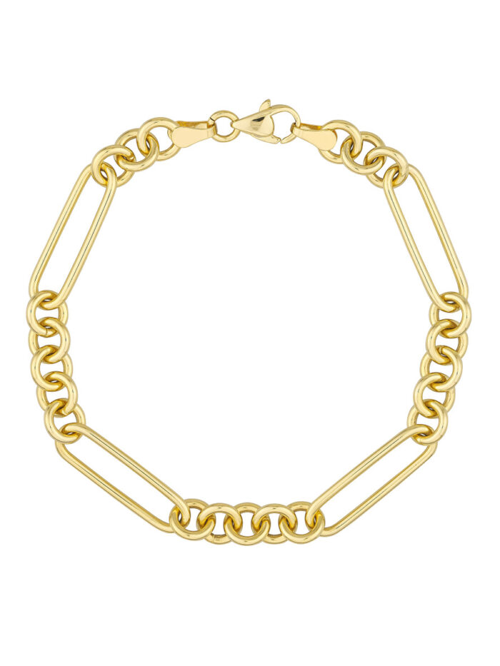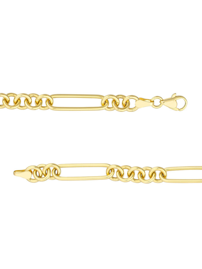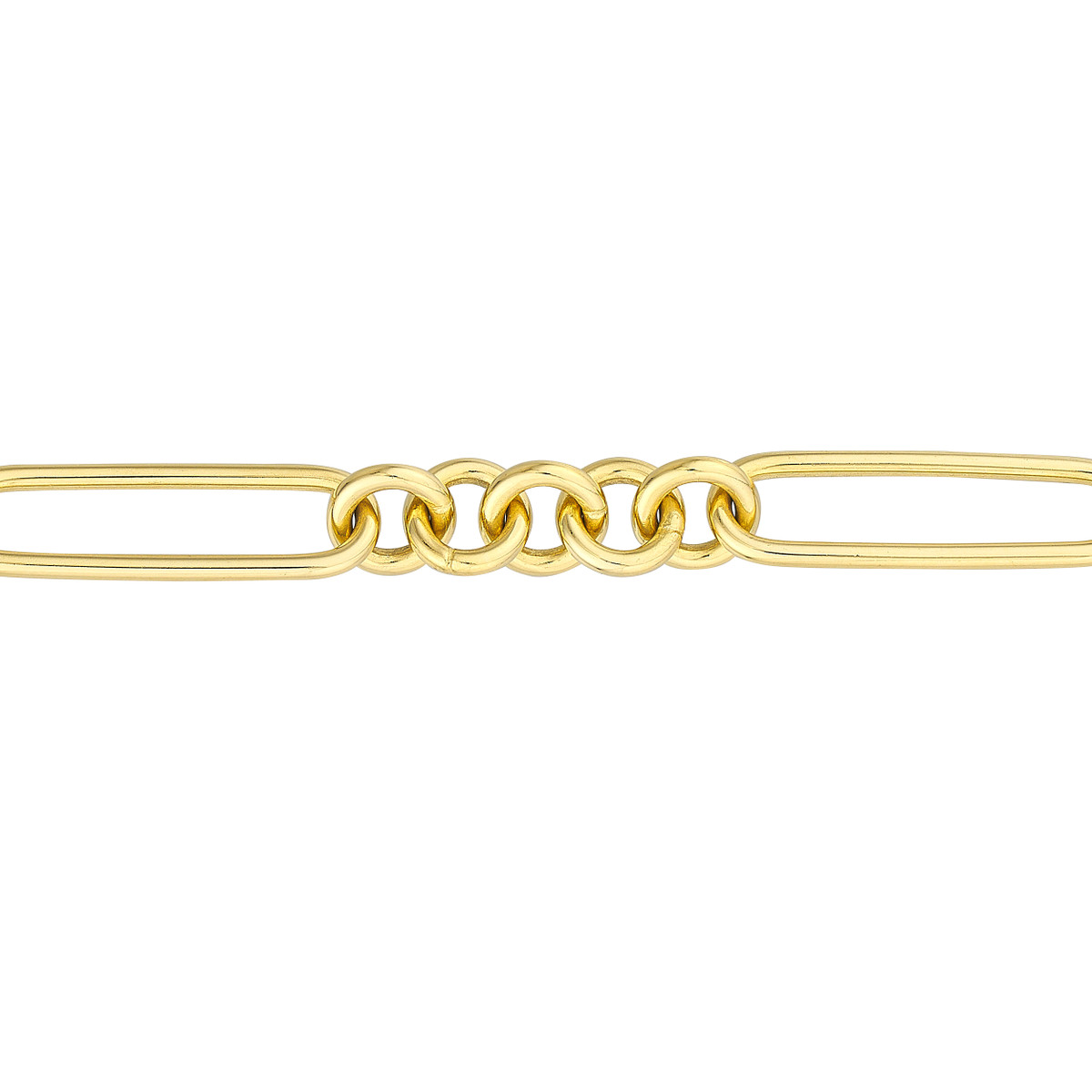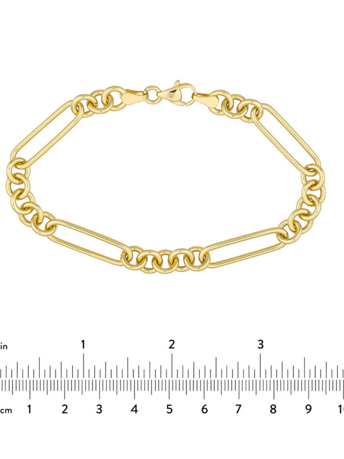 Elevate your wrist game with this stylish 5+1 Round Paper Clip Chain Bracelet in 14K yellow gold. The classic paperclip design adds a touch of modern sophistication, while the secure pear shape lobster closure ensures a comfortable fit. Wear it alone for a minimalist statement or stack it with other bracelets to create a personalized look.